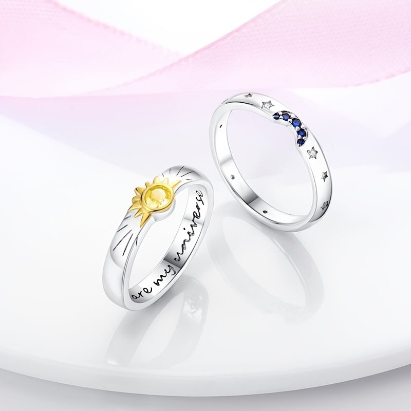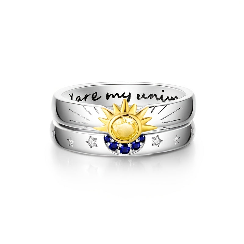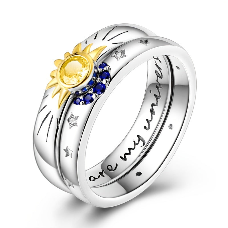 Sun Moon Double Rings Zircon Silver Finger Rings