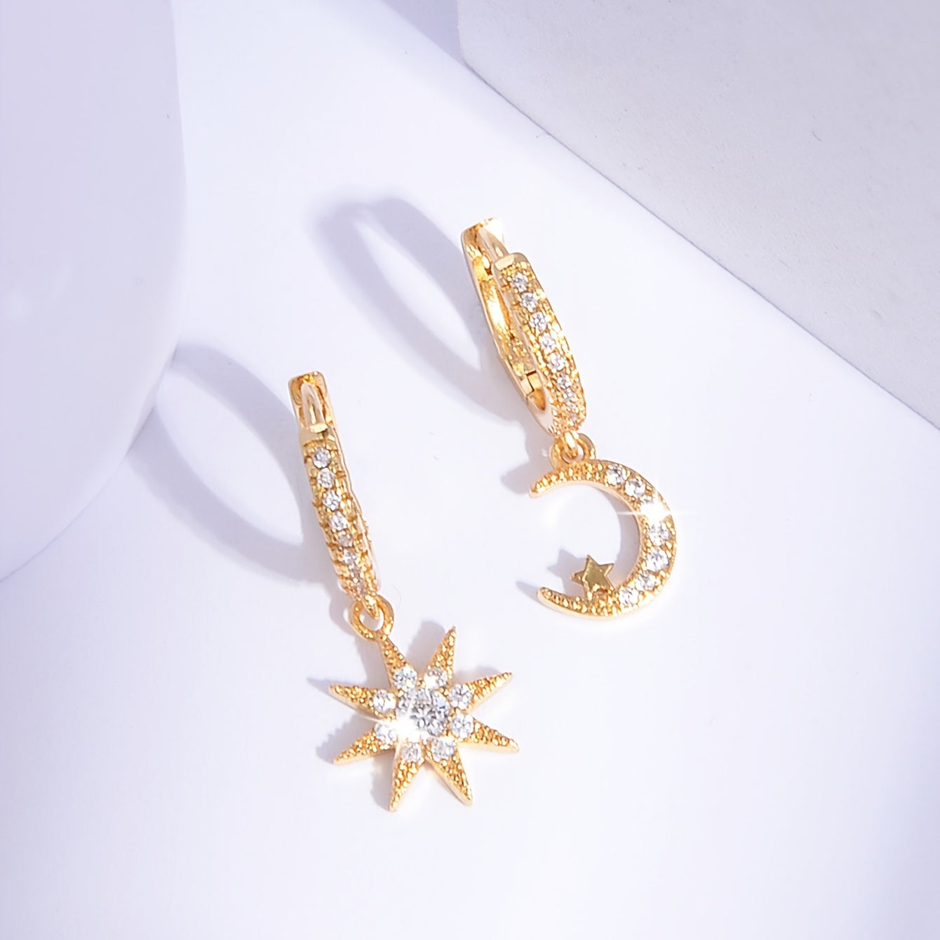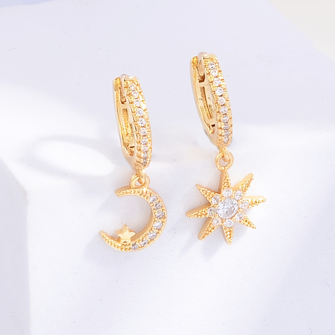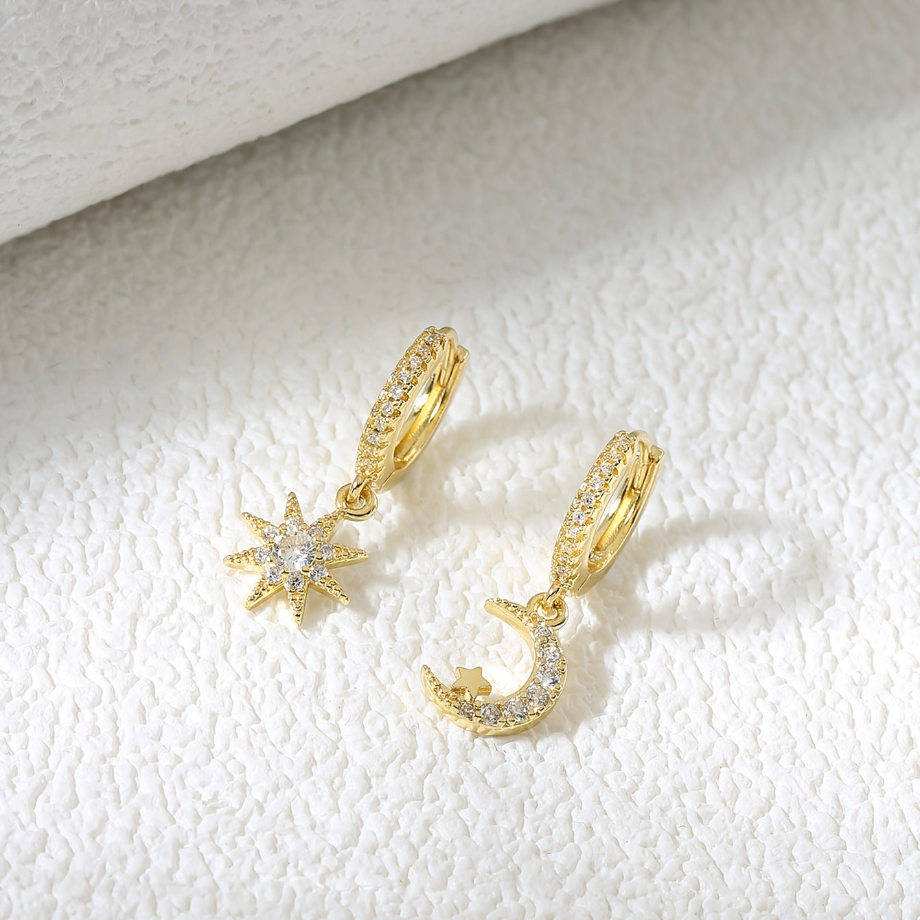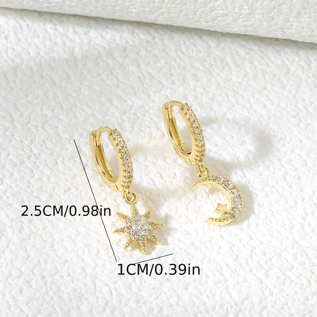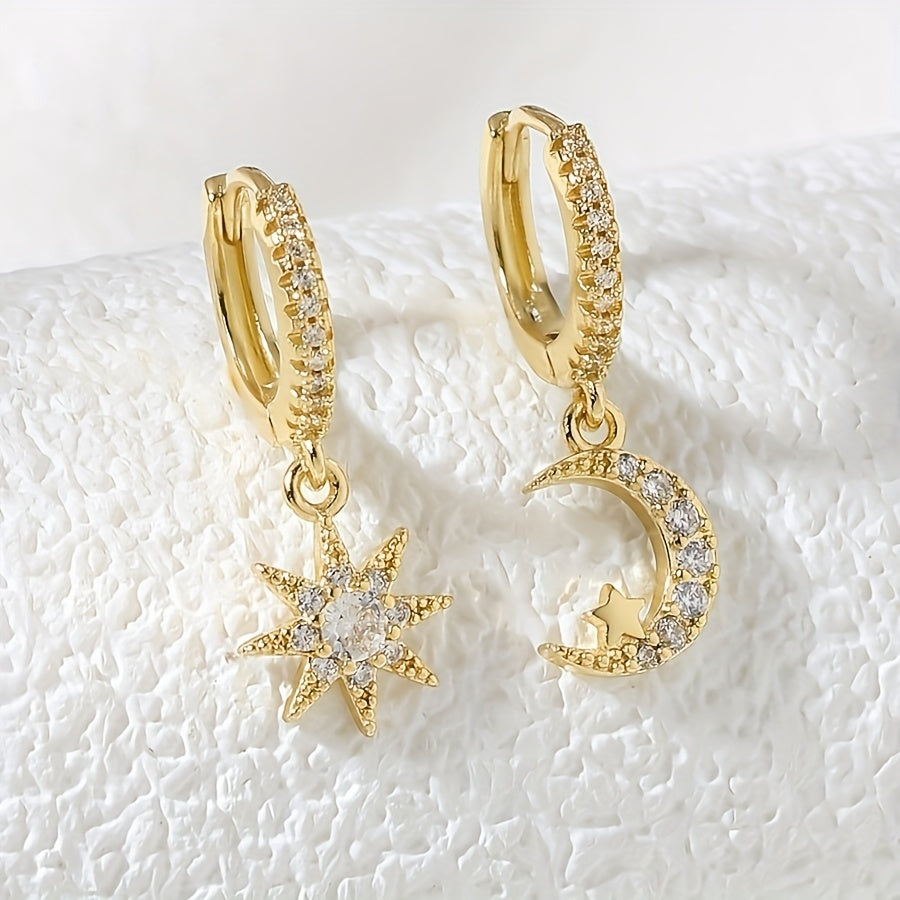 Sun & Moon Zircon Drop Hoop Earrings 18K Plated Ear Jewelry Gift
