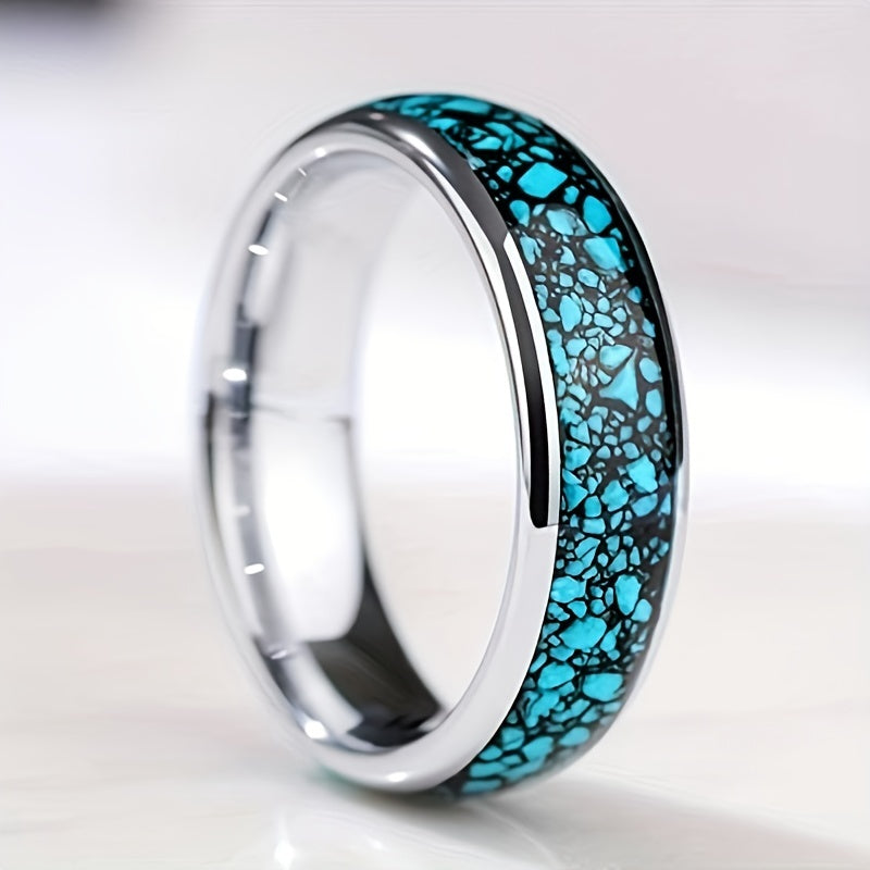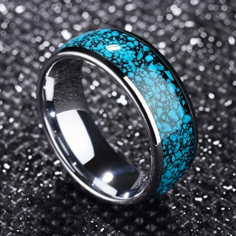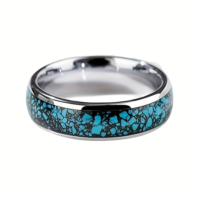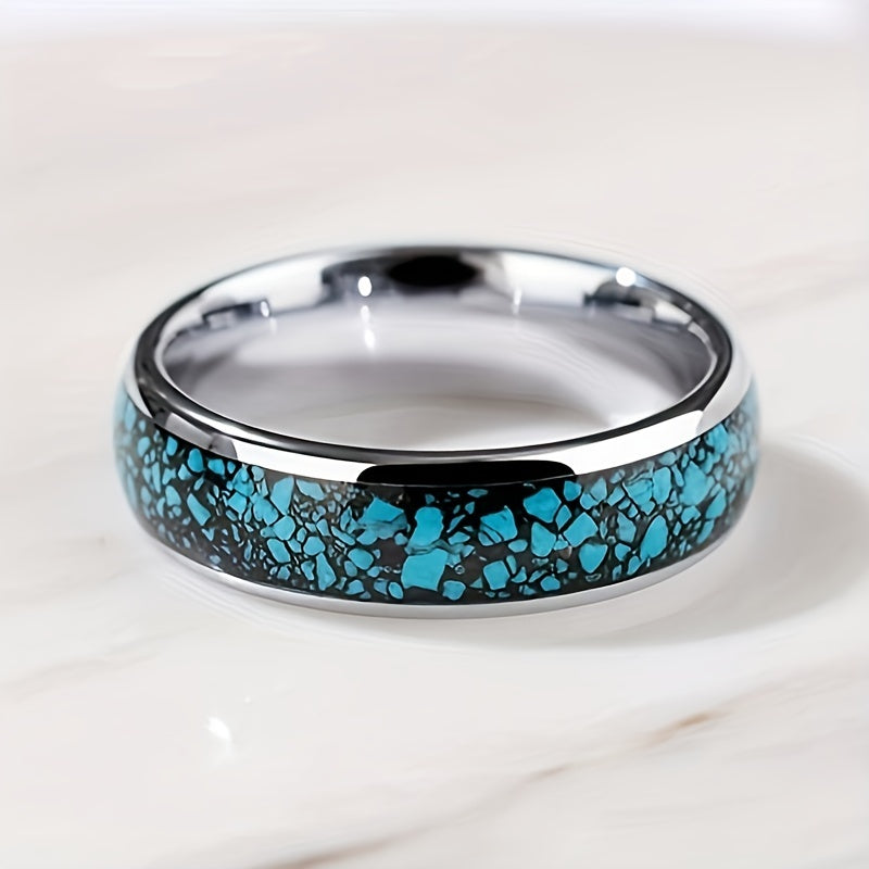 This wide ring features titanium with inlaid turquoise, making it a versatile accessory suitable for both men and women. It's perfect for adding a pop of color to your daily outfits or wearing it as a statement piece for parties.