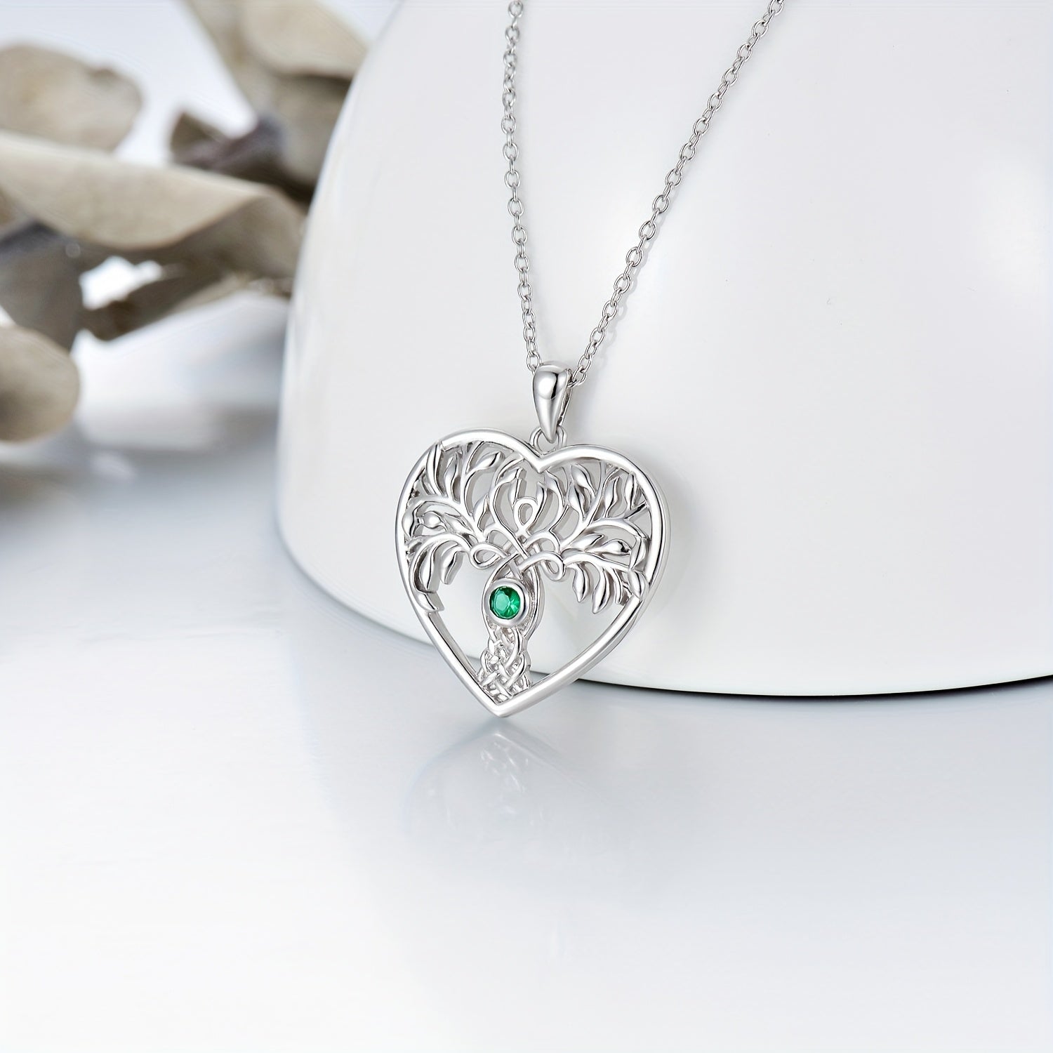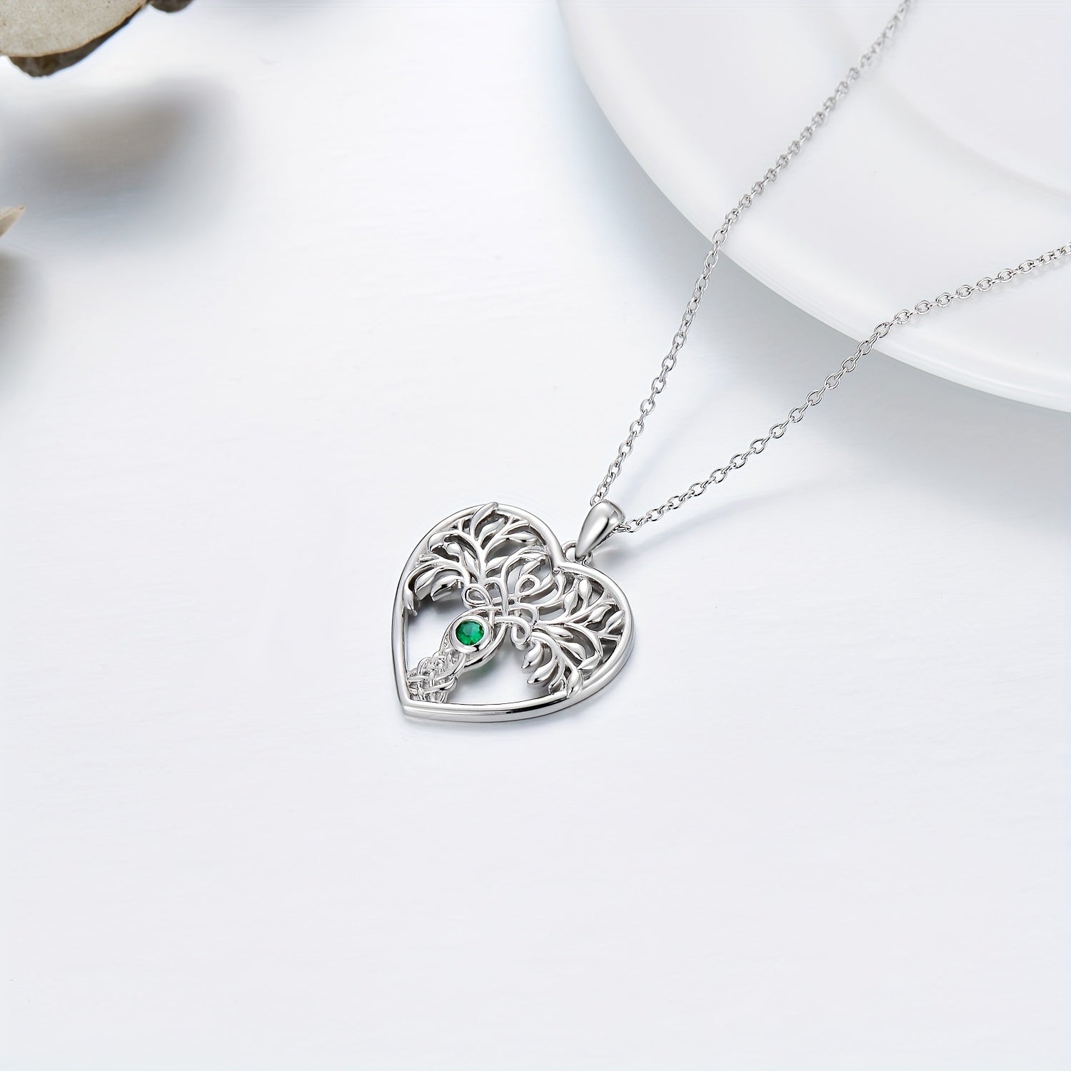 Beautiful Tree Of Life Necklace made of 925 Sterling Silver with synthetic Zirconia heart pendant. Perfect birthday gift for women, girlfriend or wife.