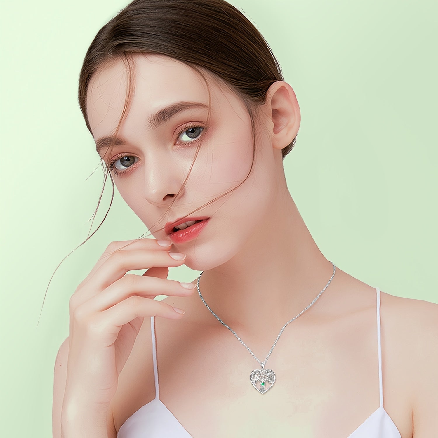 Tree Of Life Necklace 925 Silver Heart Zircon Pendant Jewelry Gift