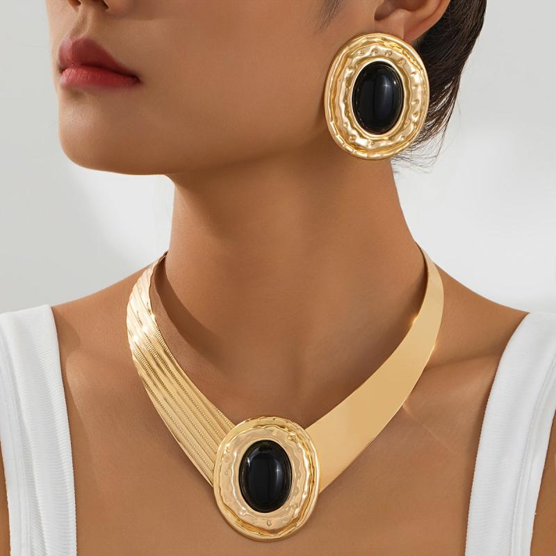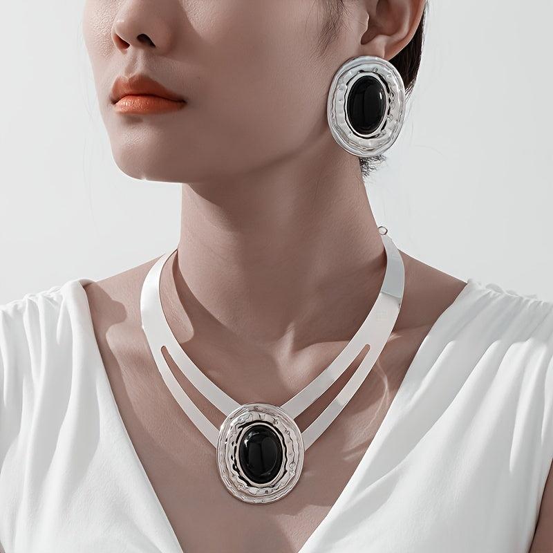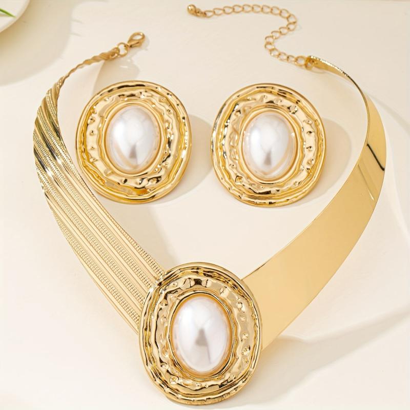This stylish jewelry set includes a choker and earrings made of alloy metal with faux pearl inlay. The stainless steel ear needles ensure durability and quality. It's great for daily wear or special occasions.