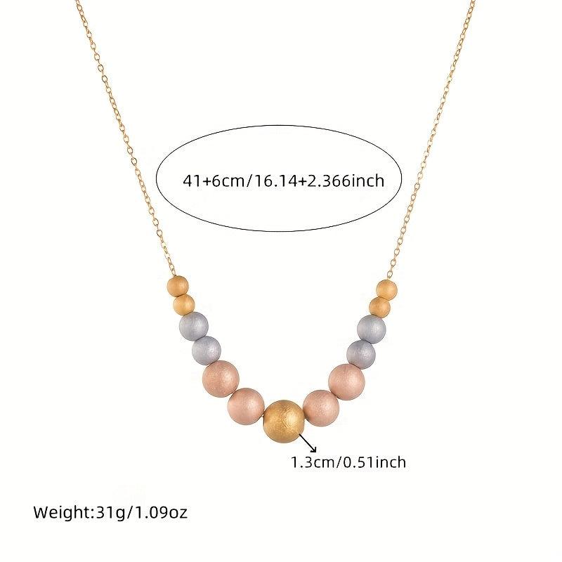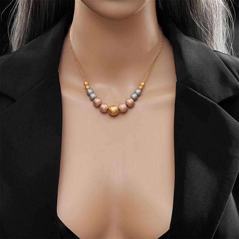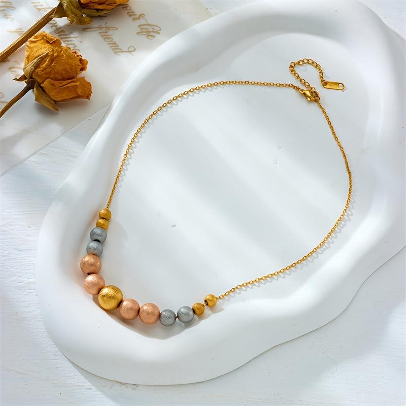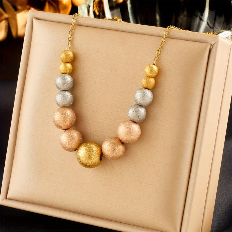 This minimalist stainless steel necklace features a golden frosted planet pendant on a triple beaded chain. Perfect for parties and everyday wear throughout the year.