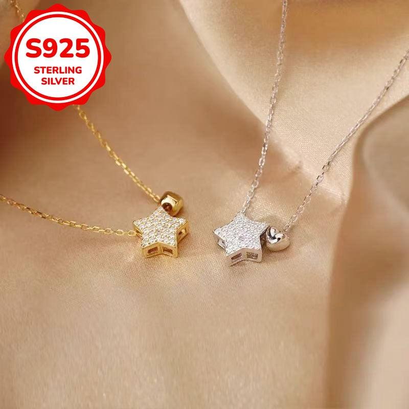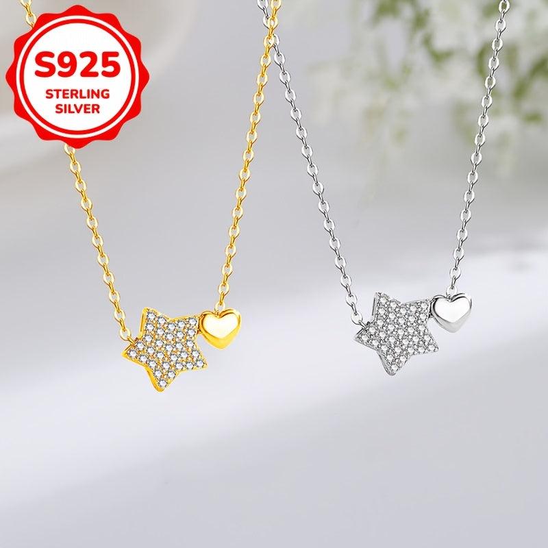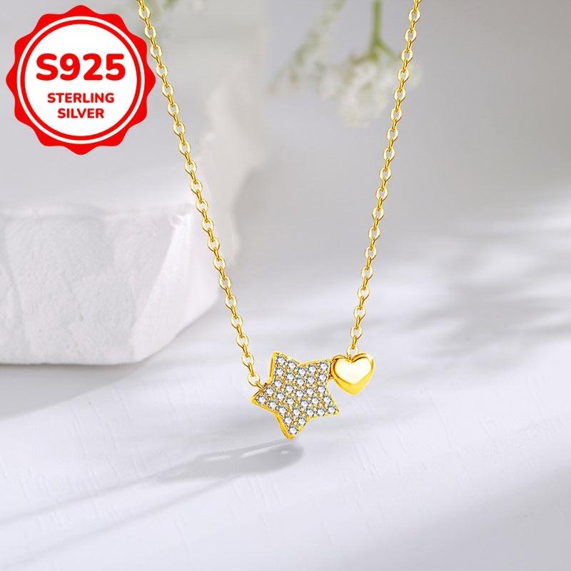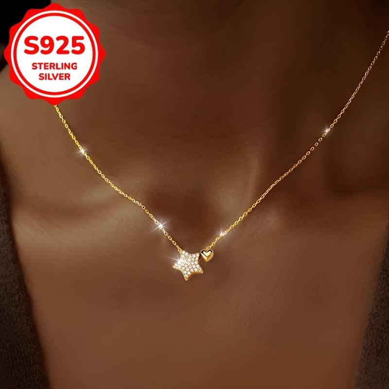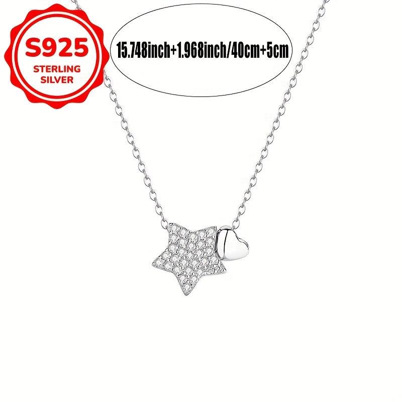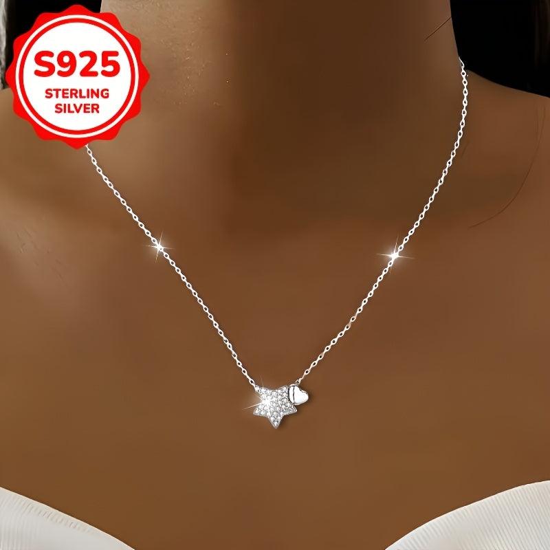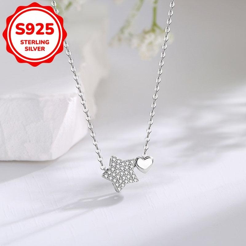 Elegant pendant necklace featuring micro inlaid synthetic zirconia on star & love pendants. Made of fashionable 3g S925 silver, suitable for any occasion.