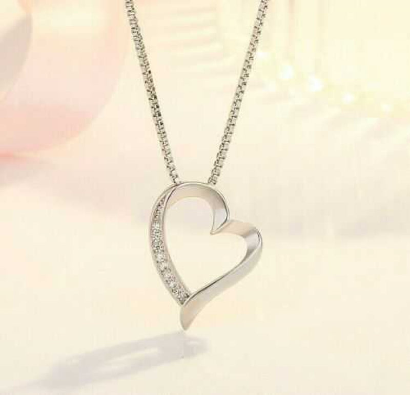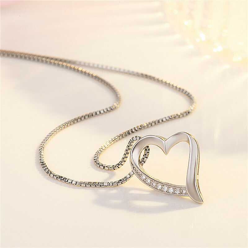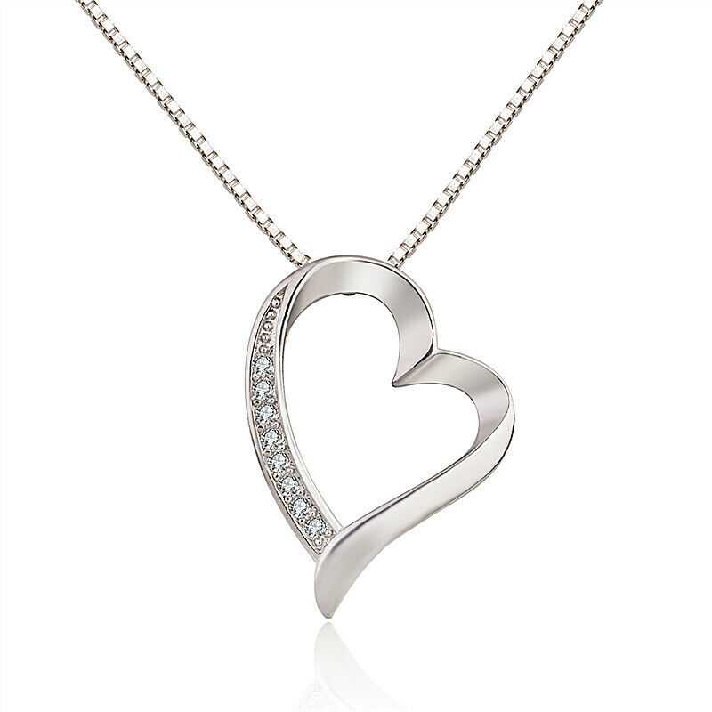 Women's Zirconia Heart Shaped Silver Plated Pendant Necklace