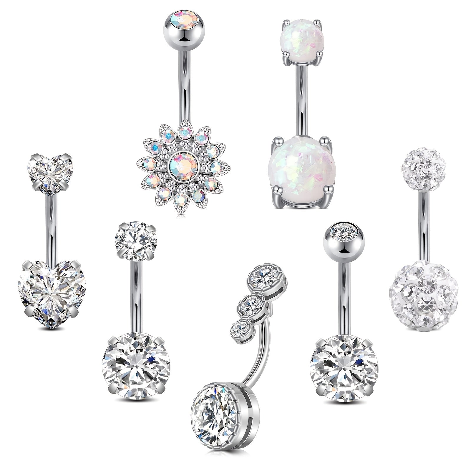 Zircon Belly Button Ring Stainless Steel Navel Piercing Jewelry