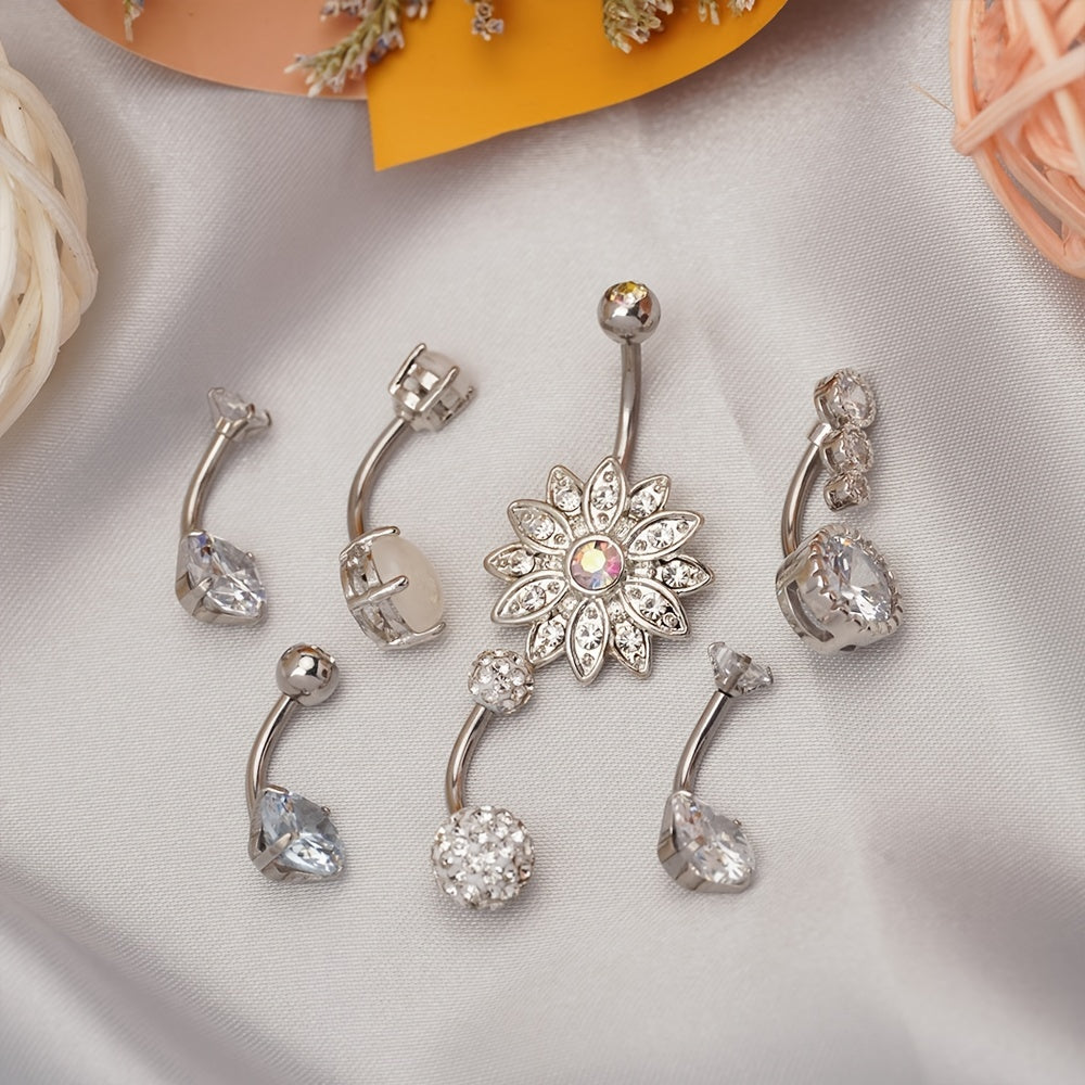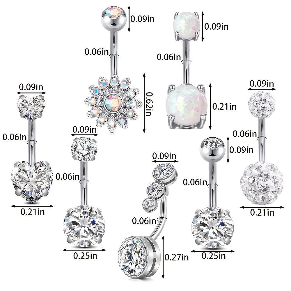 This inlaid zircon belly button ring is made of high-quality stainless steel, perfect for navel piercings.