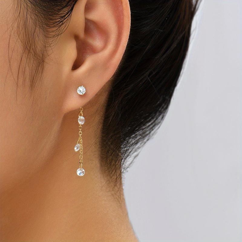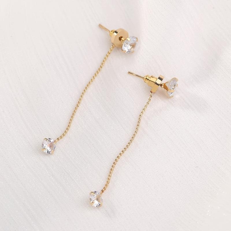 These minimalist drop earrings feature zircon inlays for a touch of elegance. Perfect for women and girls.