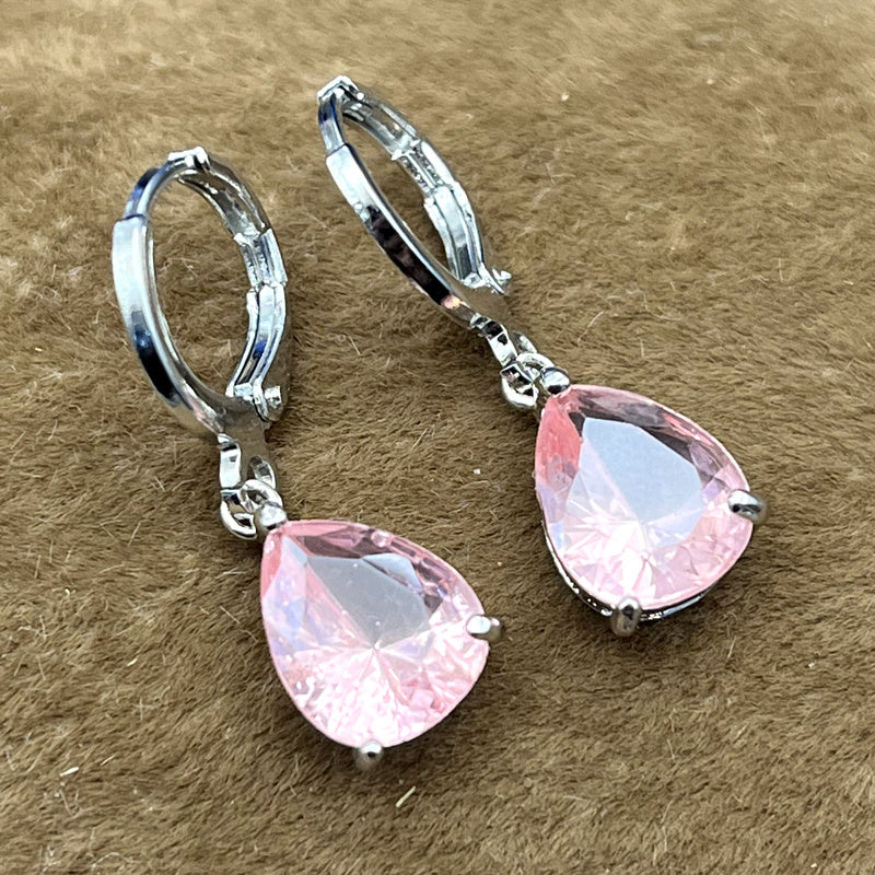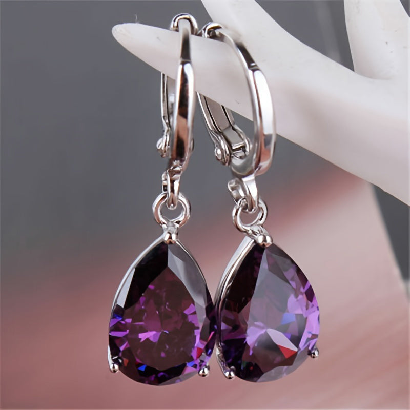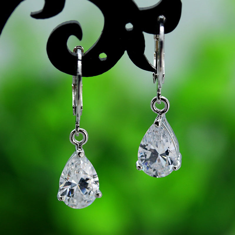 Elegant teardrop shape zircon drop dangle earrings for women. Perfect as a classic ear jewelry decoration or gift.
