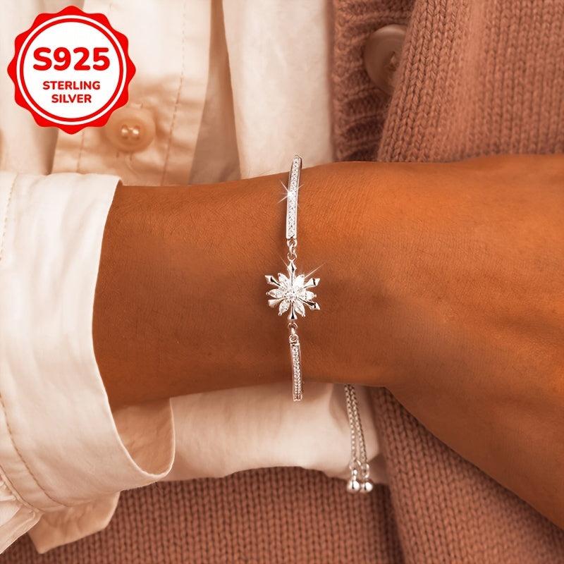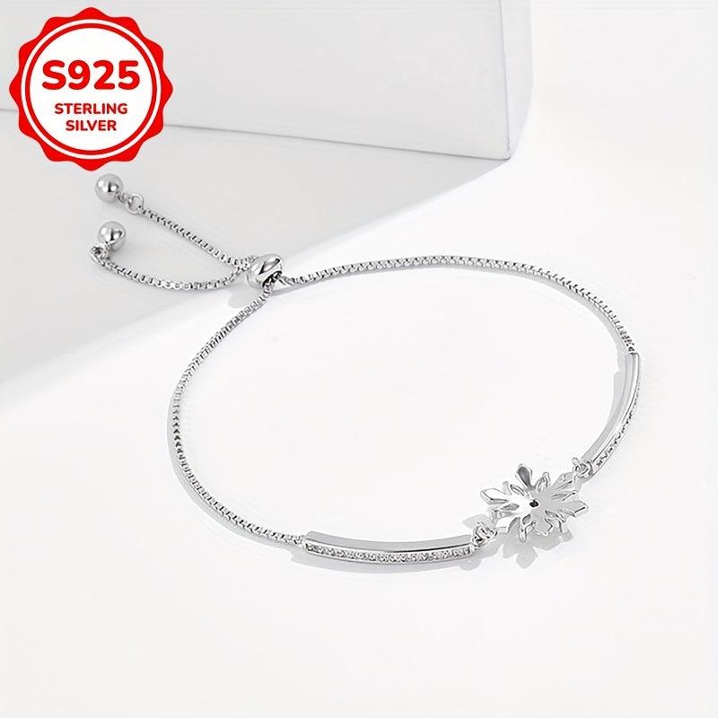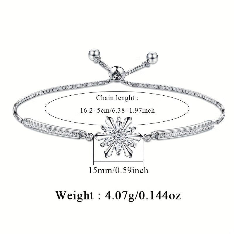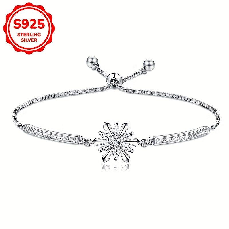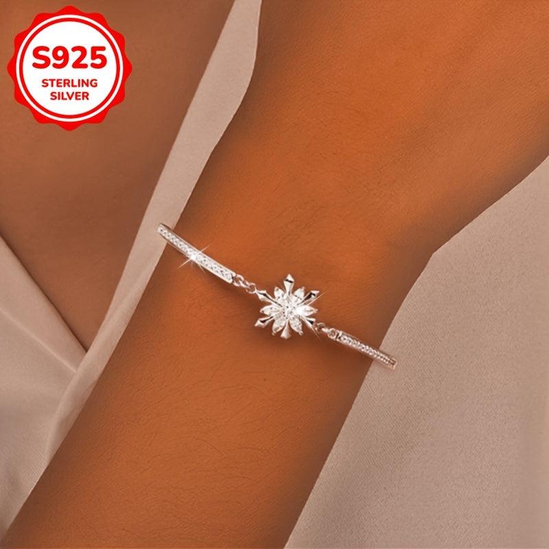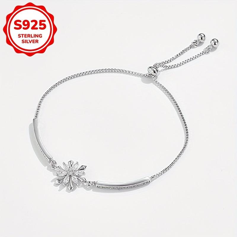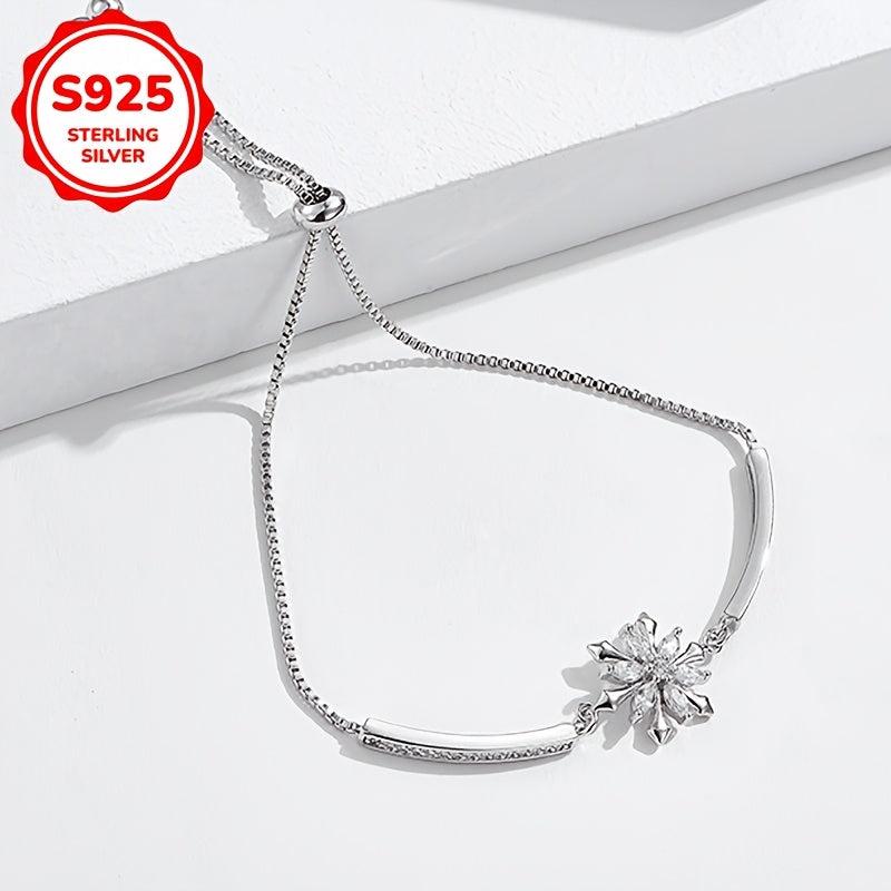 Elegant bracelet with synthetic zirconia lines and flower design, perfect for daily or vacation wear. Made of 925 silver, ideal for girlfriends and friends.