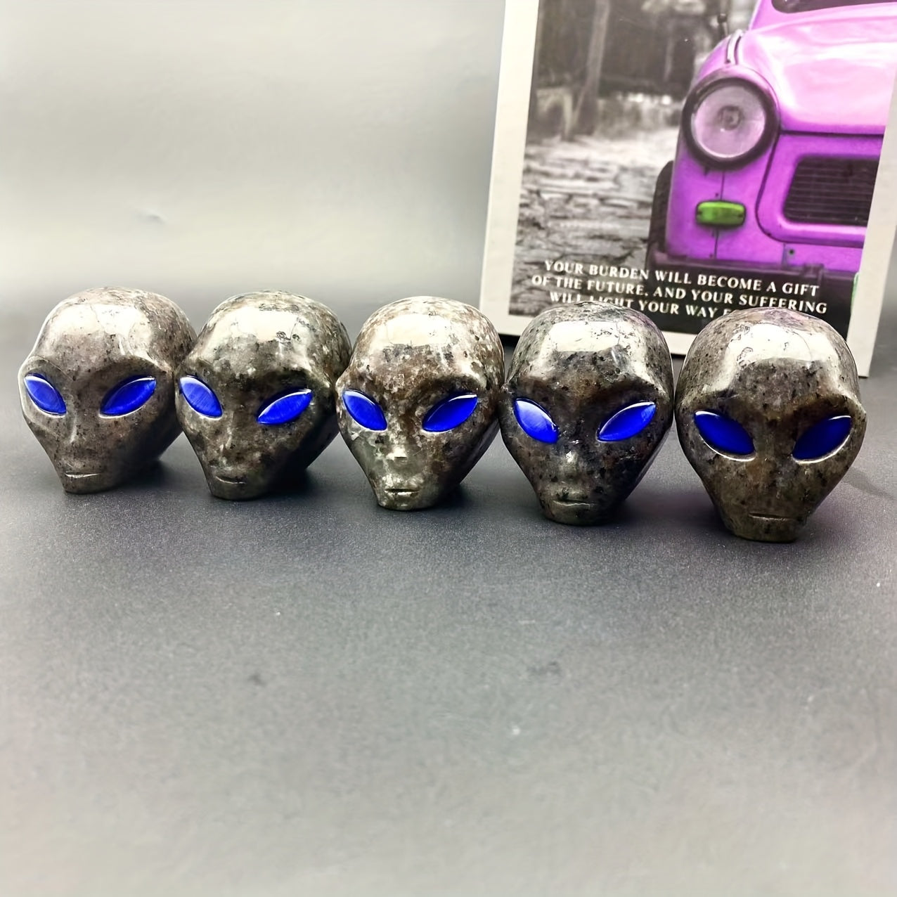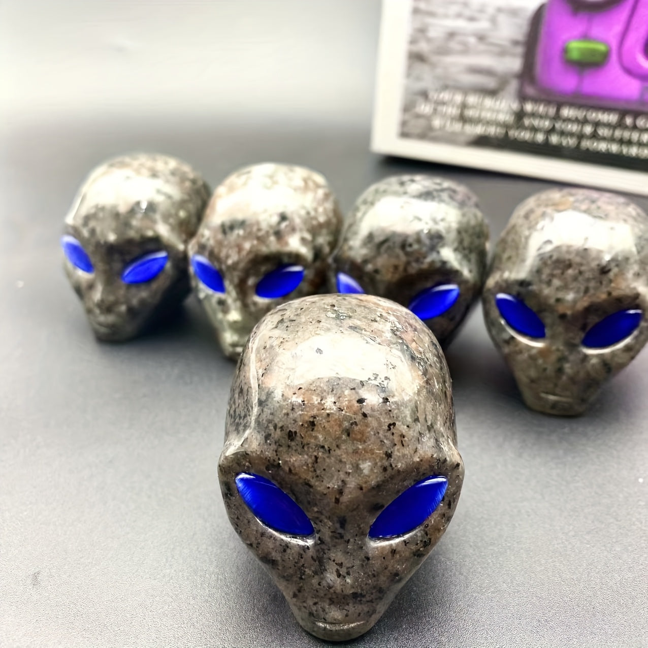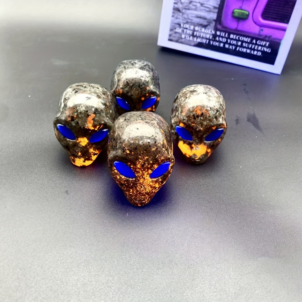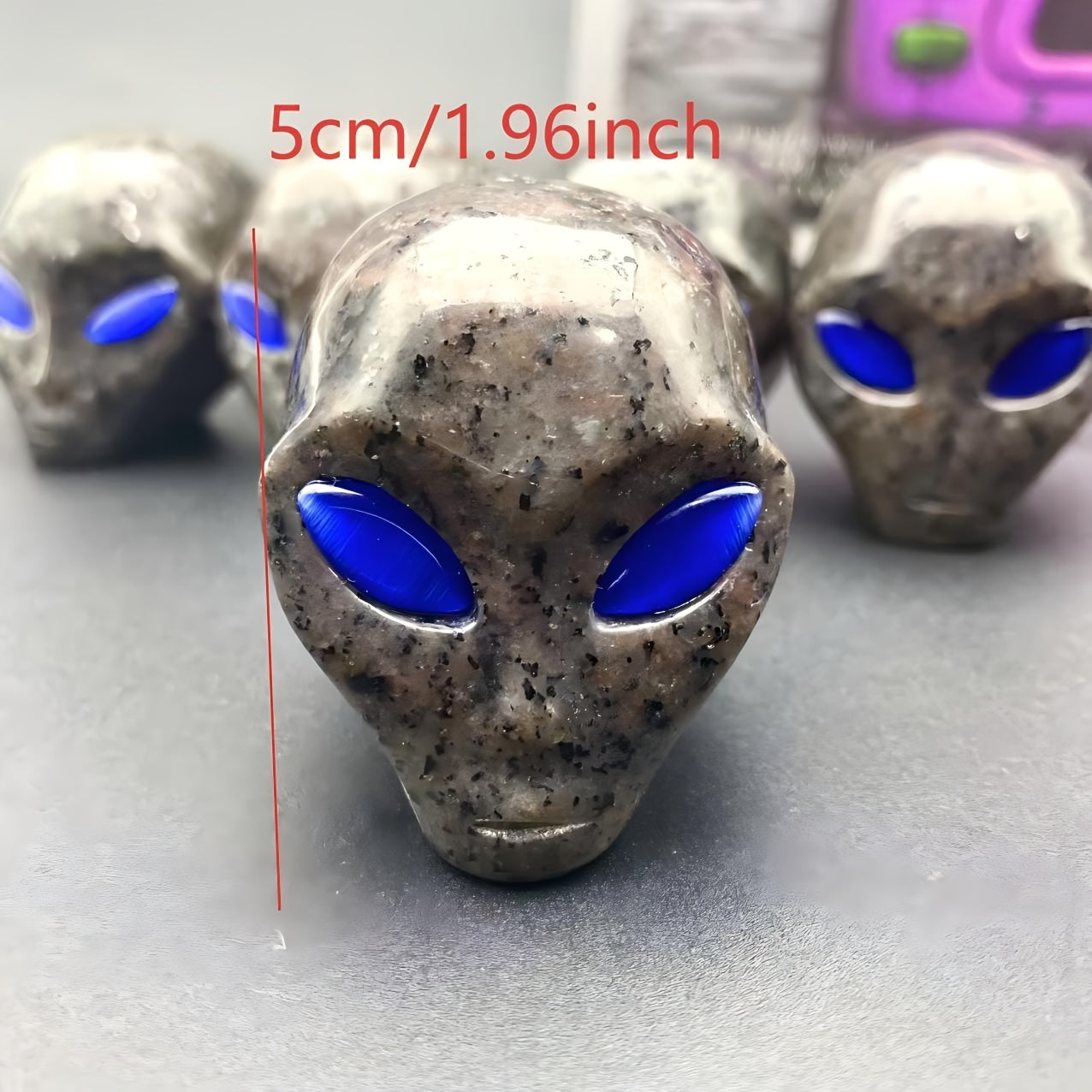 Unique crystal skull perfect for home decor, jewelry display, and Christmas. Yooperlite stone with captivating eyes that react to light.