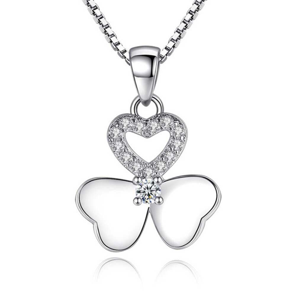 Women's Silver Plated Open Heart Flower Zirconia Pendant Necklace