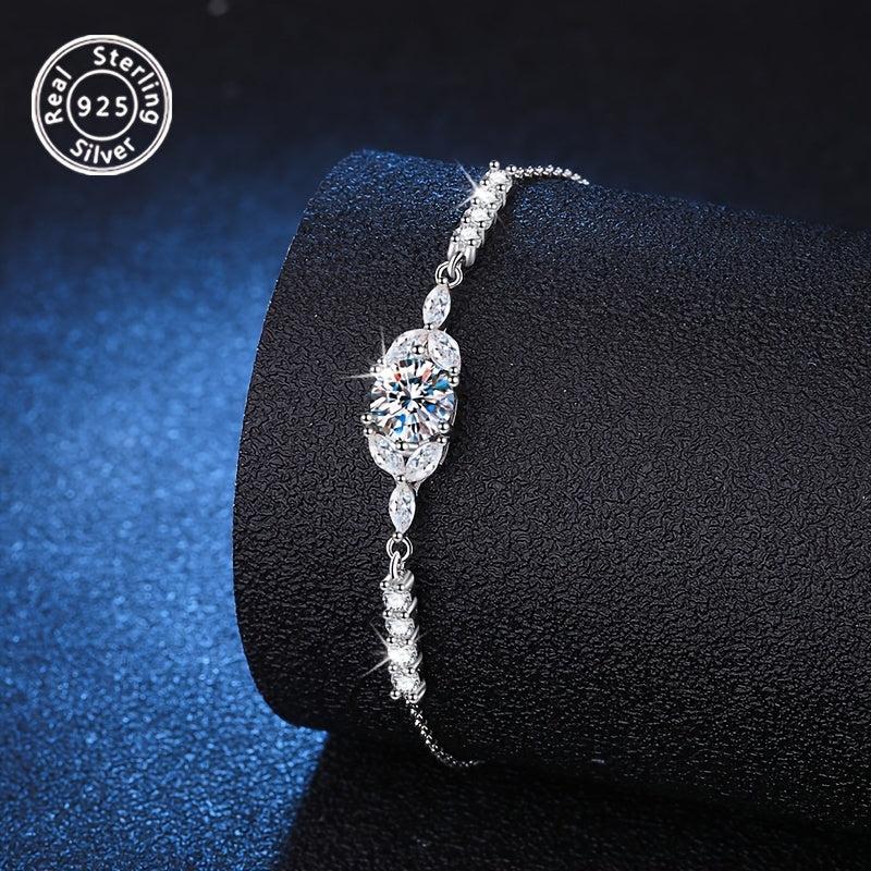 Experience the brilliance of moissanite with this sparkling gemstone bracelet. Crafted in 925 sterling silver, this exquisite piece is an ideal gift for her.
