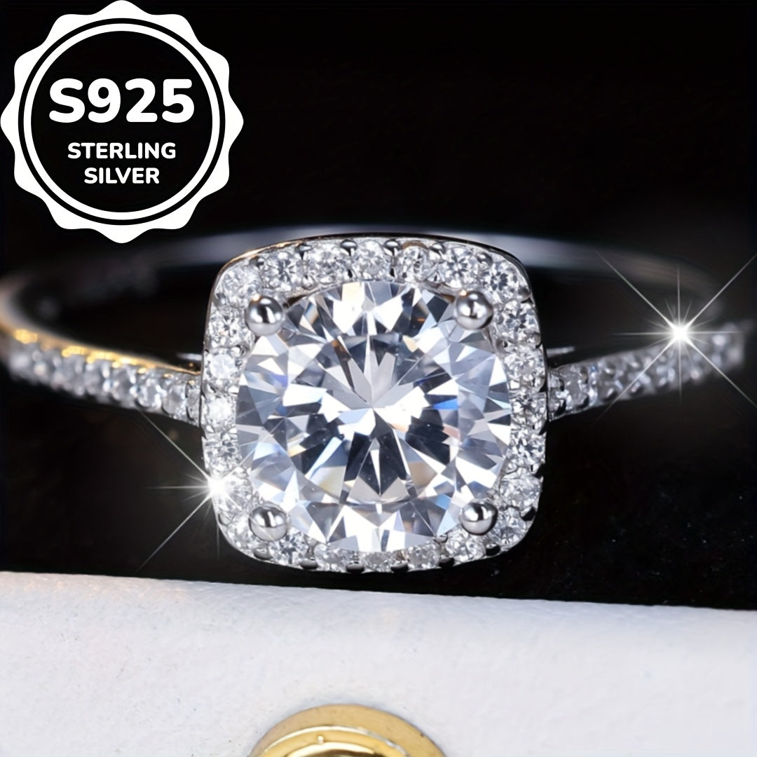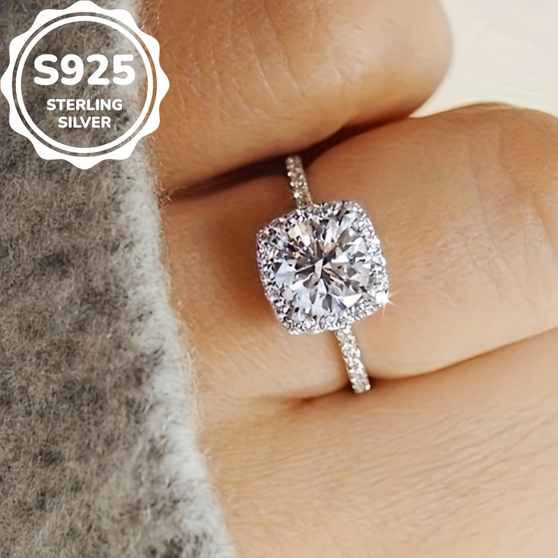 Elegant and sophisticated, this engagement ring features a sparkling square zirconia set in pure silvery s925. Perfect for any special occasion.