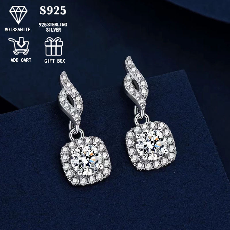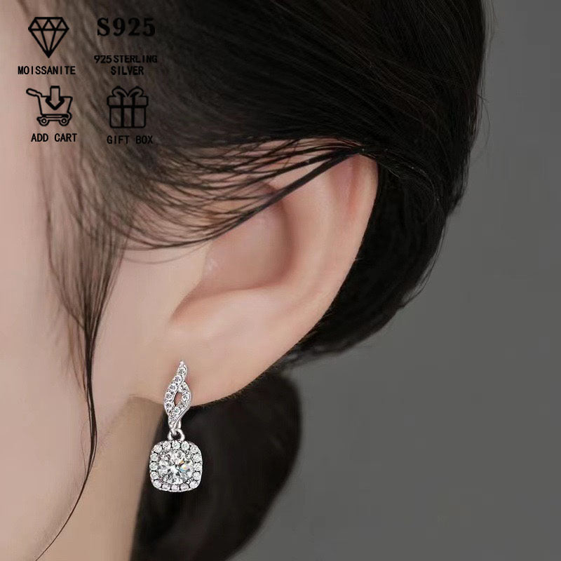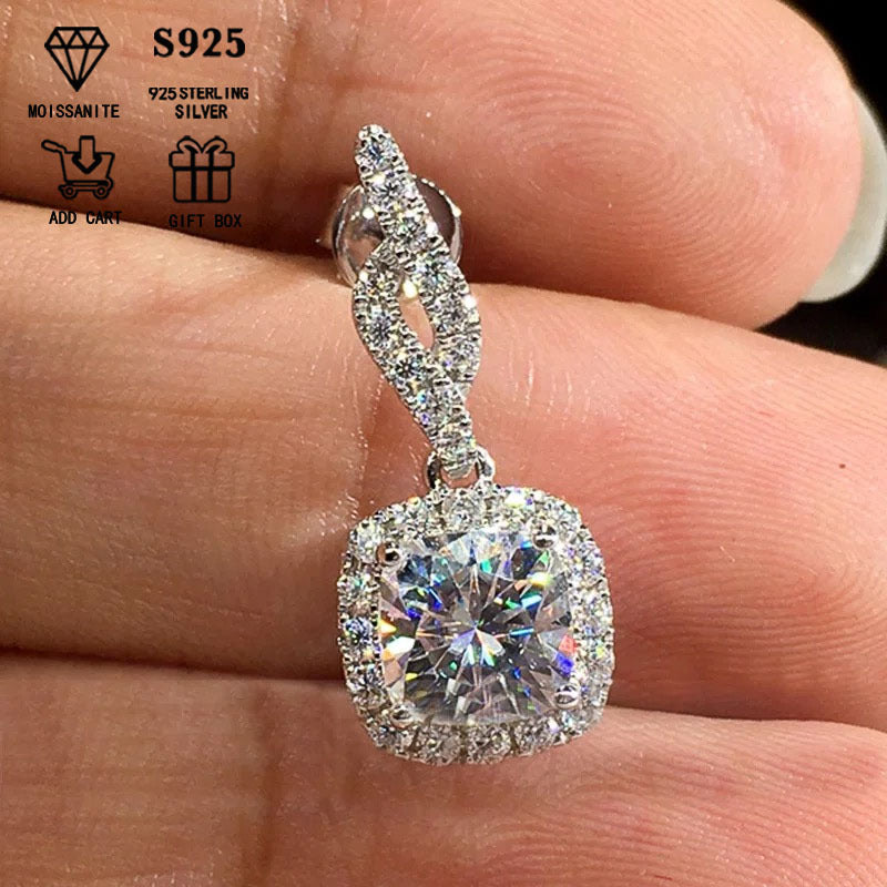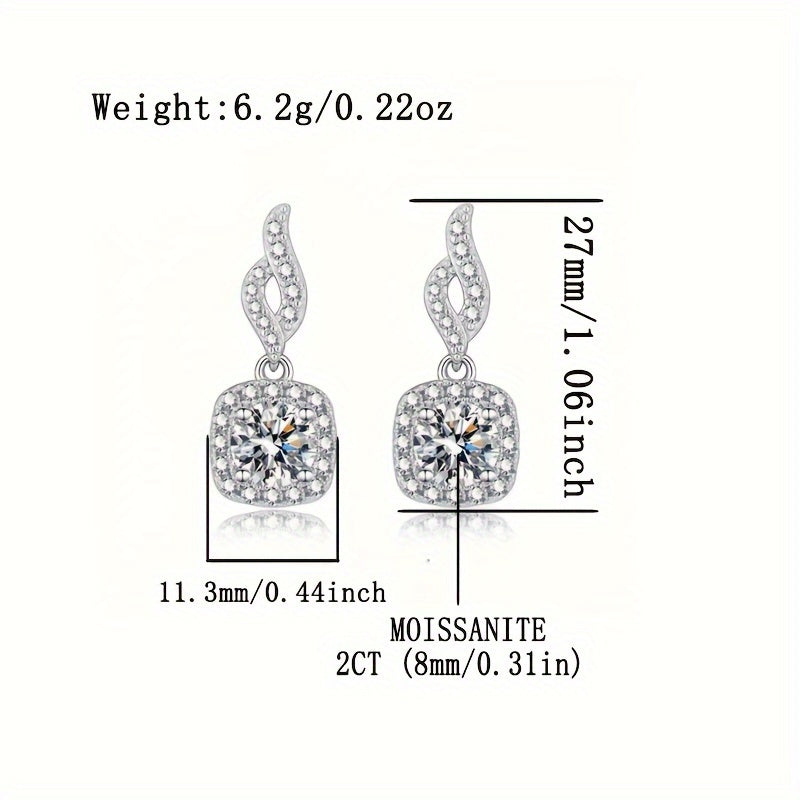 Stunning 2ct Moissanite drop earrings crafted in hypoallergenic S925 sterling silver. Perfect anniversary gift for her!