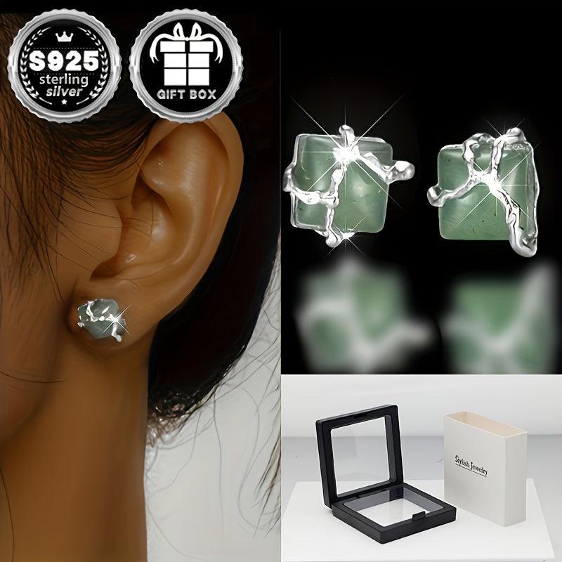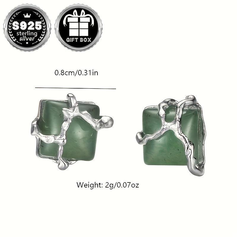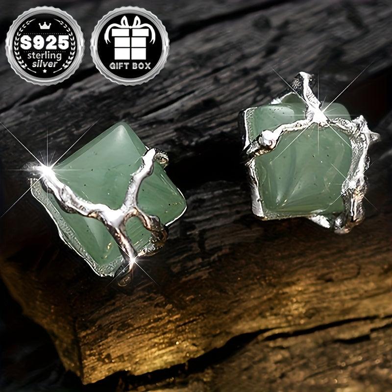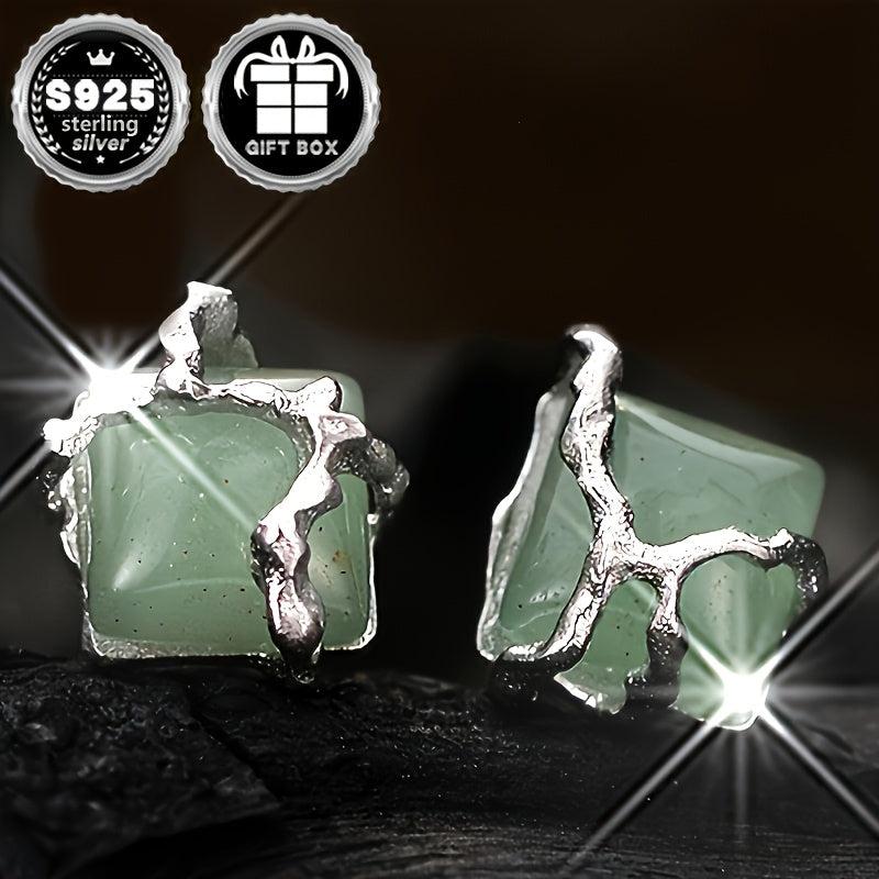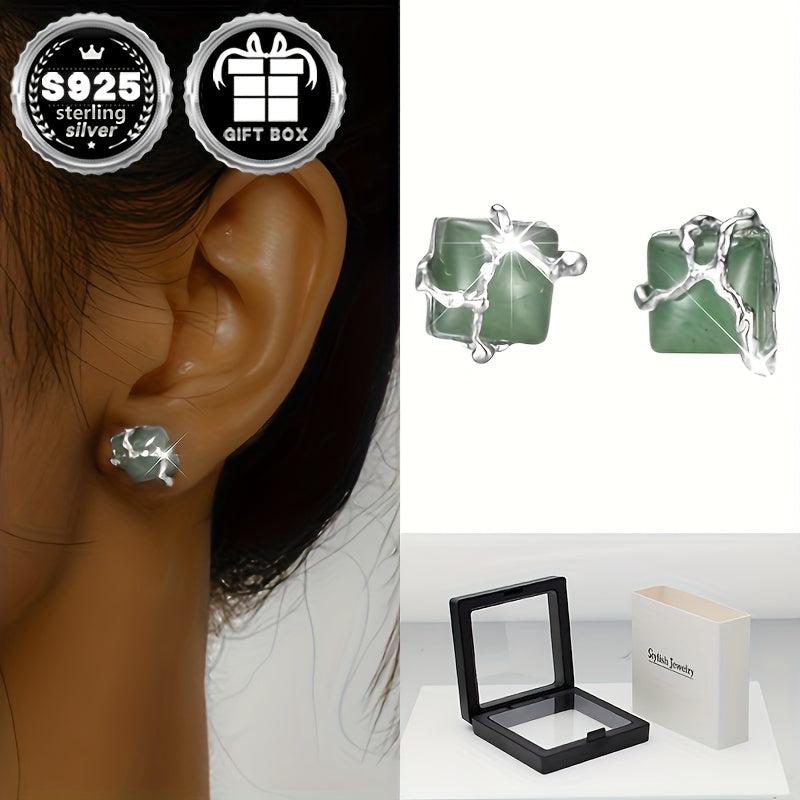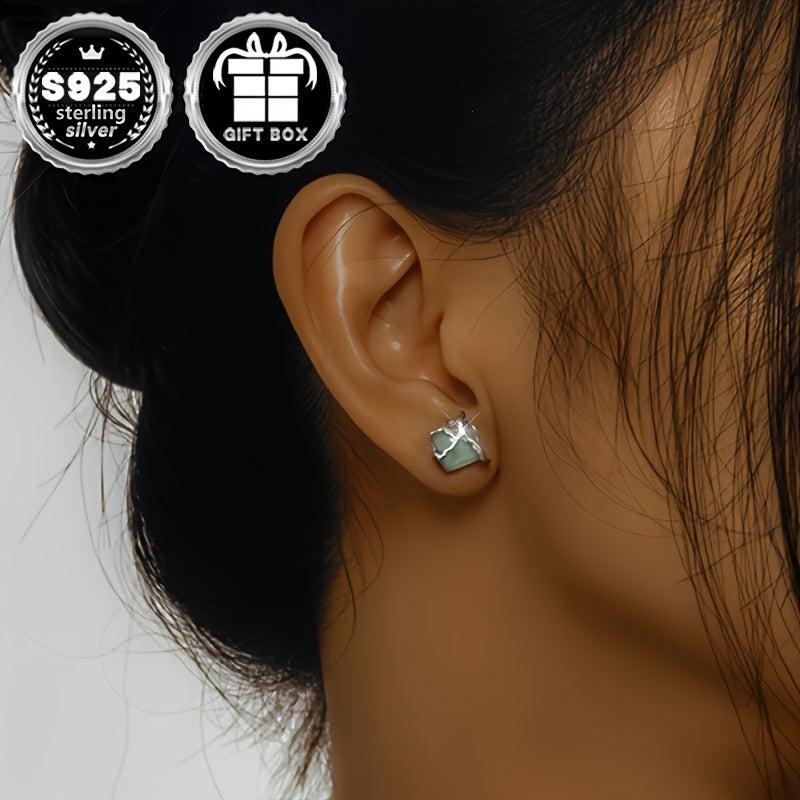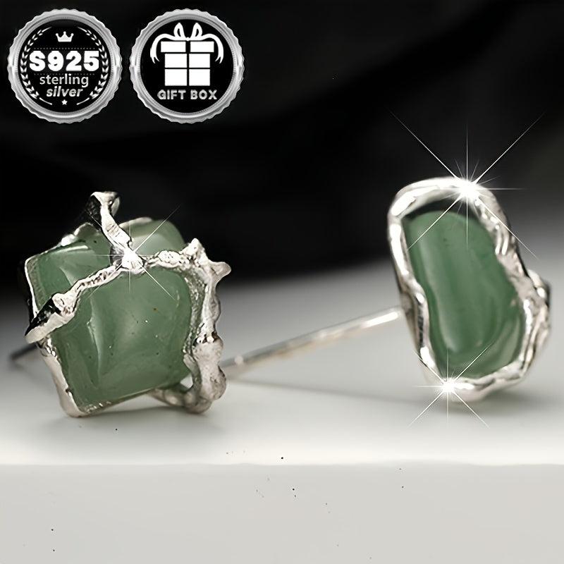 These 925 pure silver earrings feature imitation jade, making them ideal for daily wear, travel, and gifting.