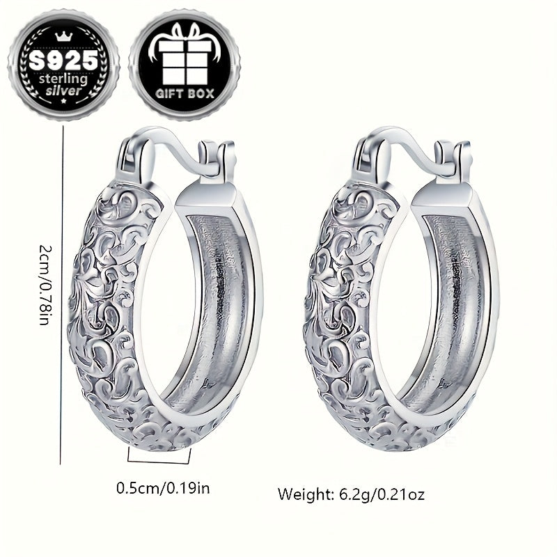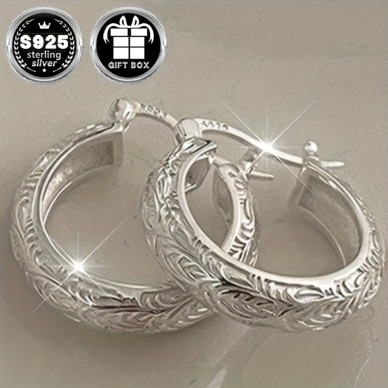 These 925 pure silver earrings feature an embossed Tang grass pattern for a classic retro look. They are low allergy and lightweight at approximately 6.2g.