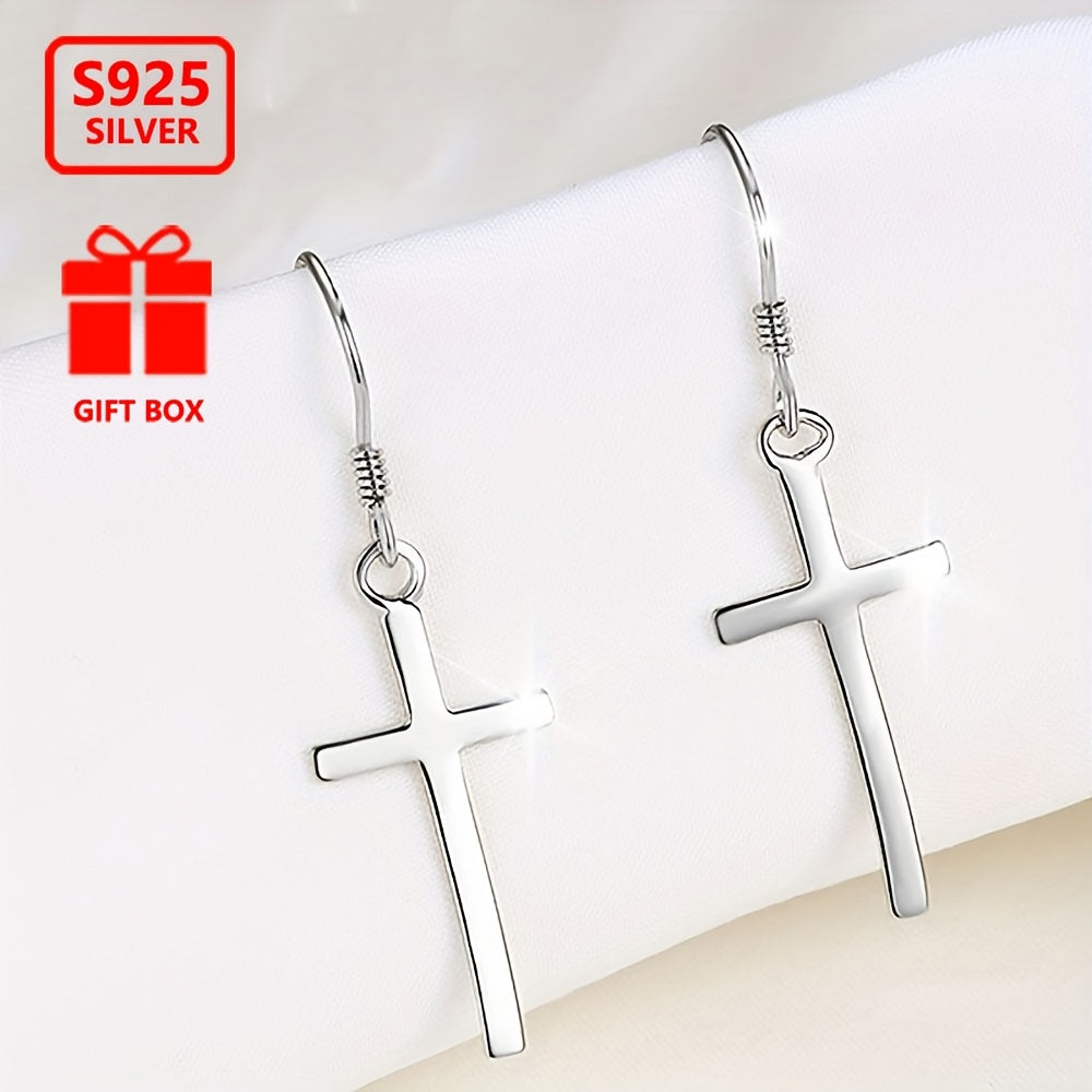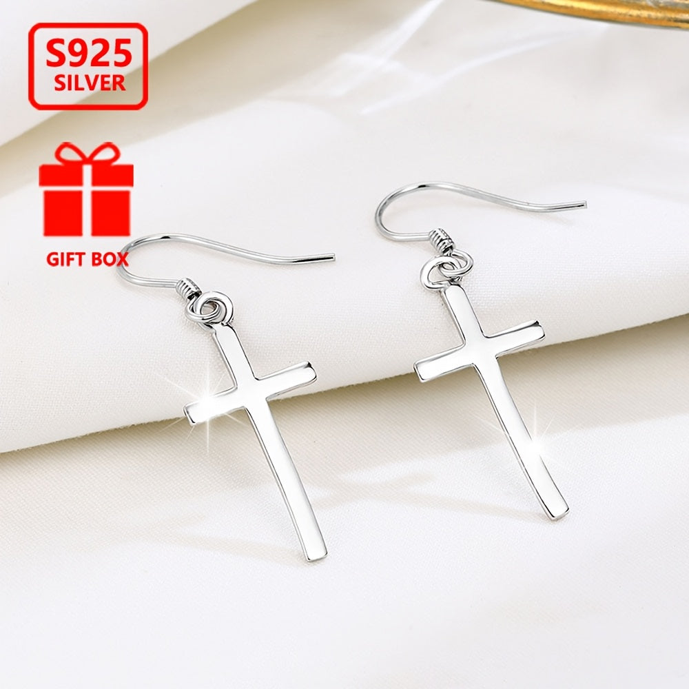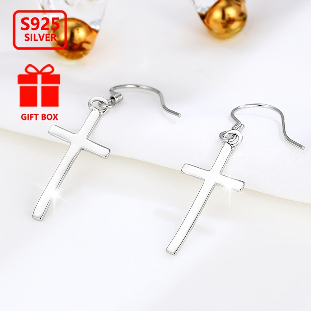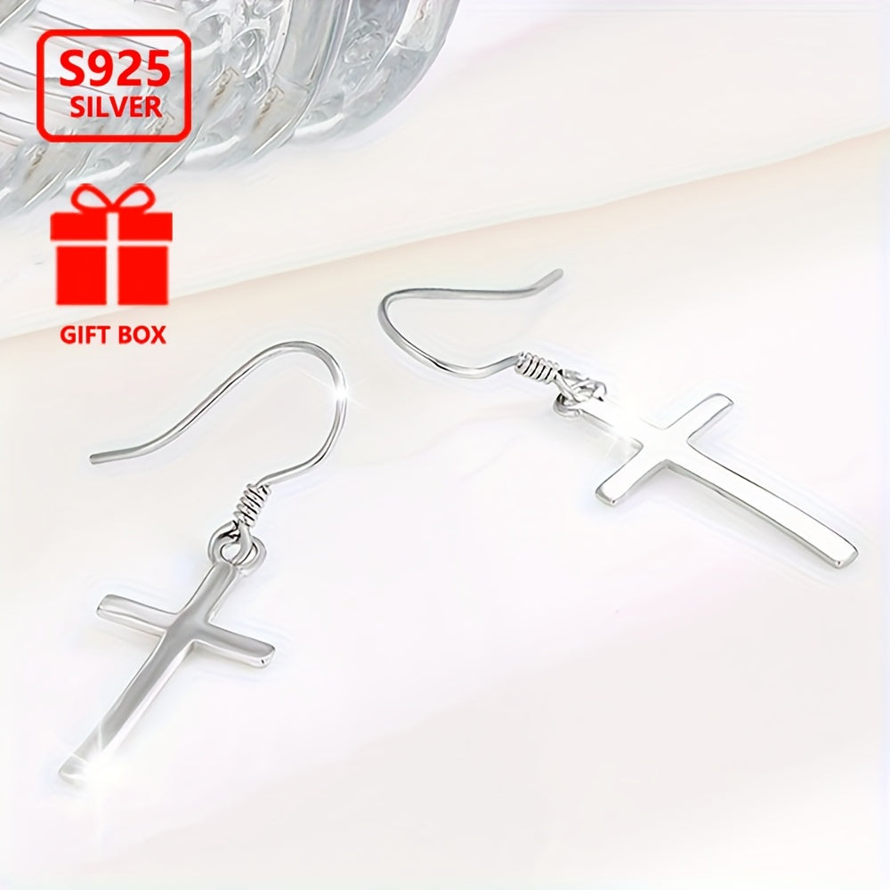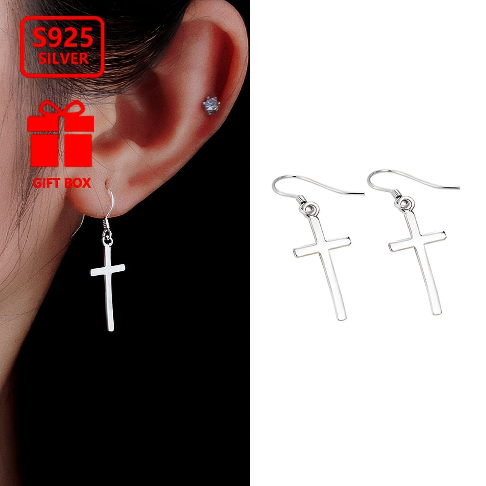 2pcs Cross Earrings Silvery Women's S925 Pure Cross Earrings