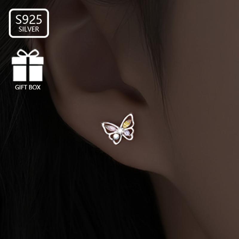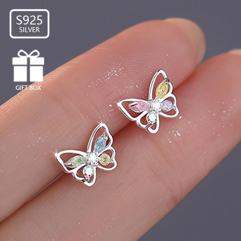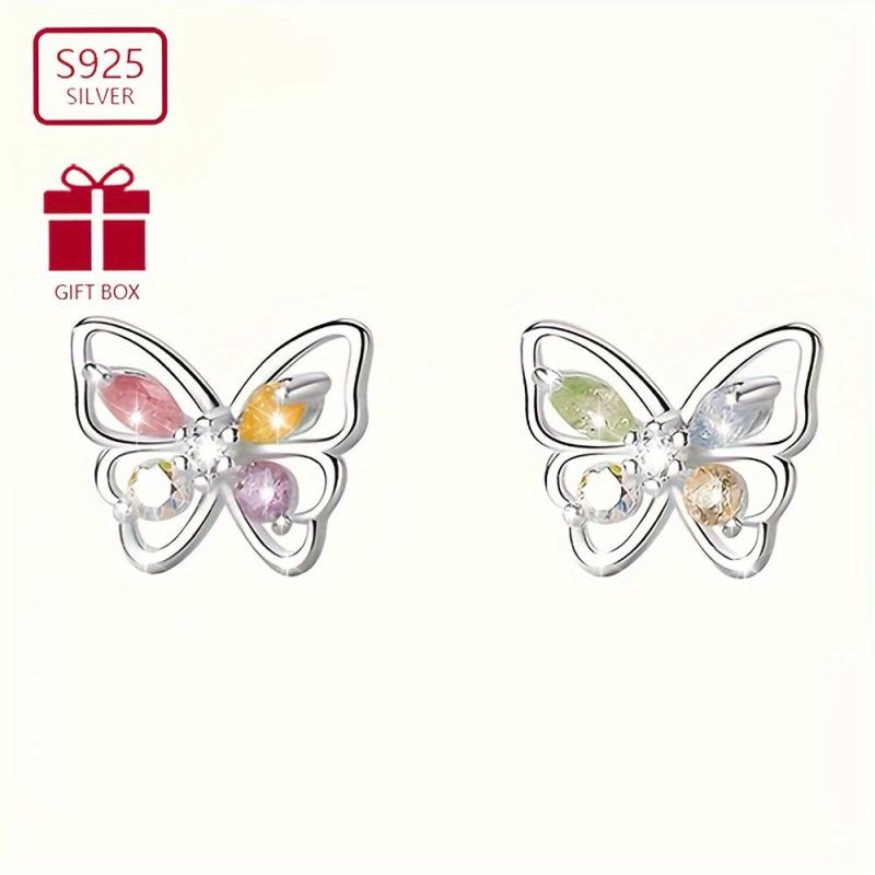Gorgeous butterfly stud earrings made of s925 pure silvery, adorned with synthetic zirconia. Ideal for parties and travel.