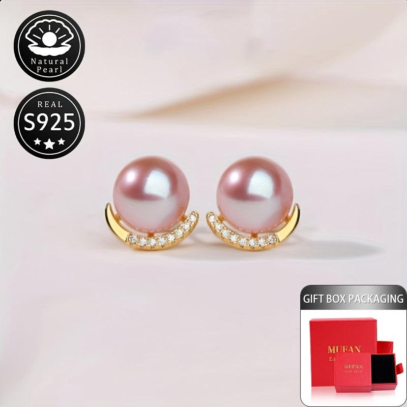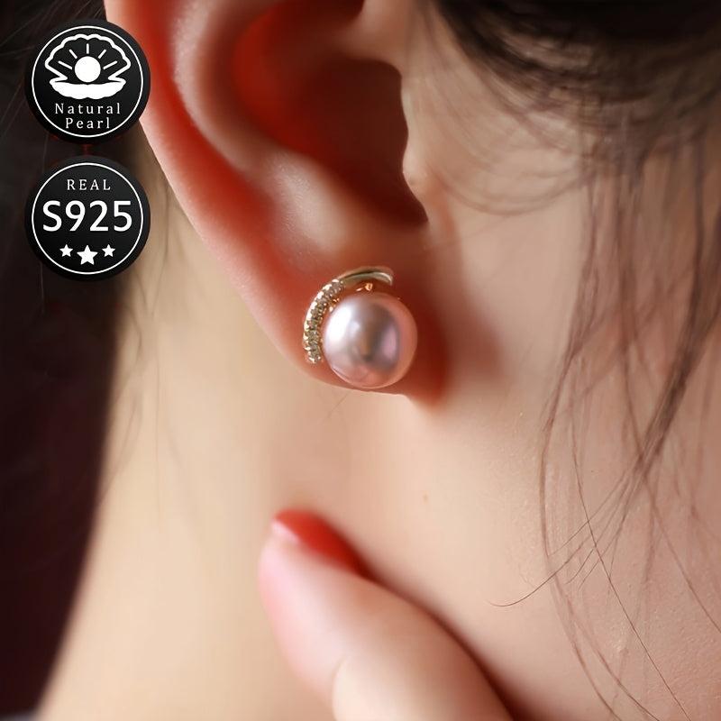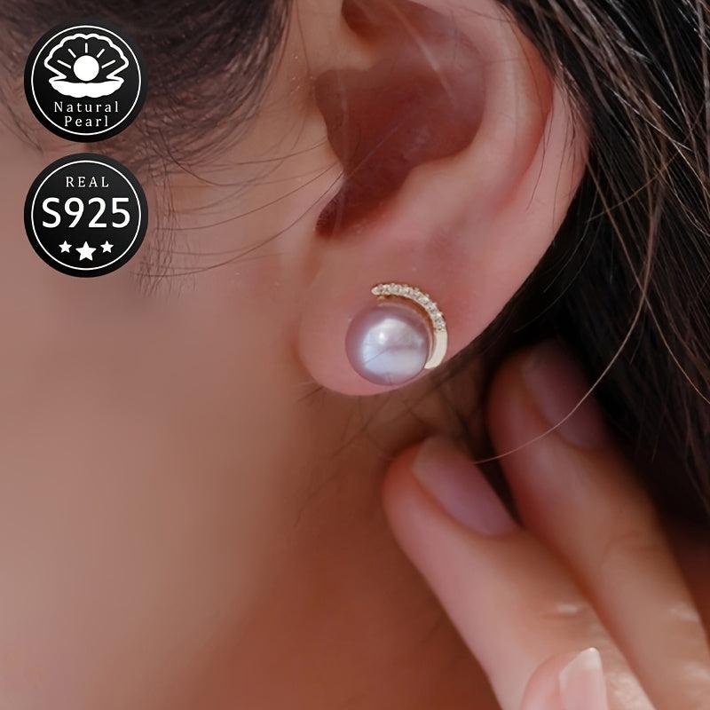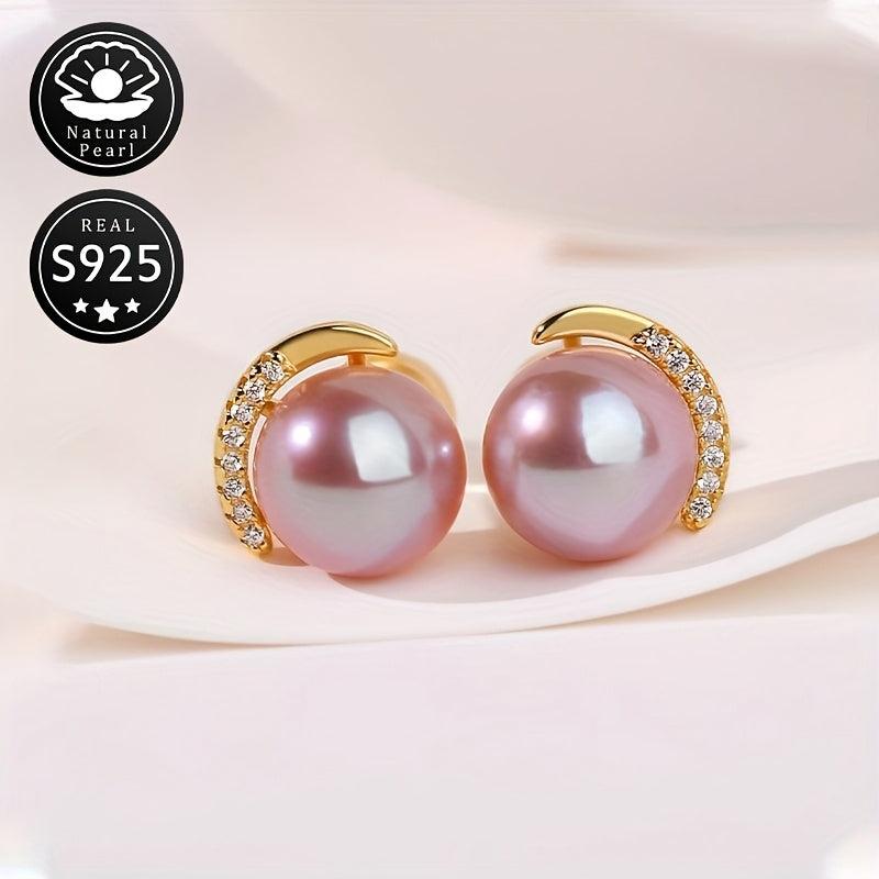 Elegant and stylish earrings featuring 8-9mm flattened oval pink purple freshwater pearls, perfect for June birthdays. Made with high-quality S925 silver.