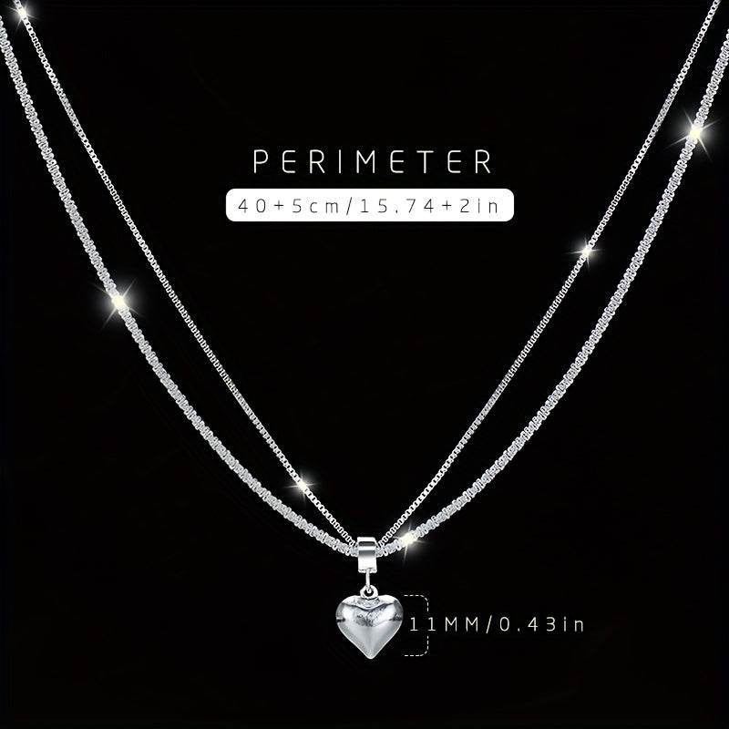 This elegant necklace features a double layer 925 pure silvery design with a heart-shaped pendant. Perfect for daily wear and special occasions, this versatile necklace adds a touch of sophistication to any outfit.