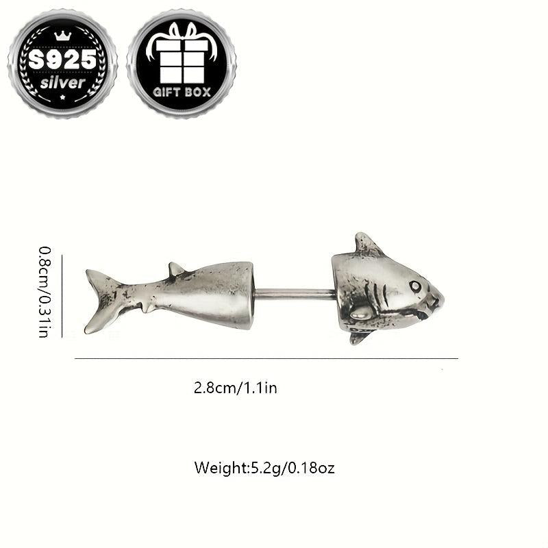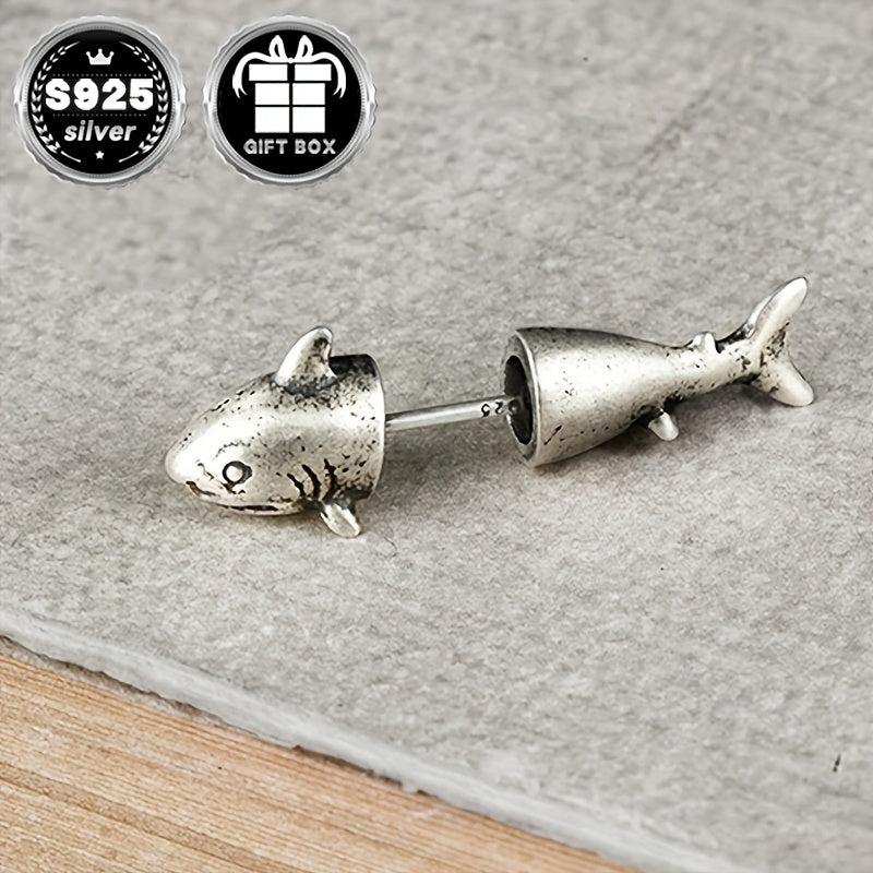 These unique shark earrings are made of 925 pure silver, perfect for a gothic punk style look. Ideal for Halloween parties or as a holiday gift for someone special.