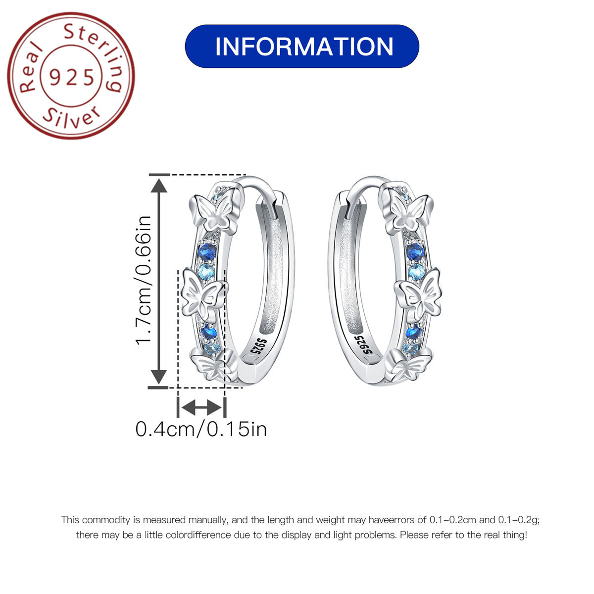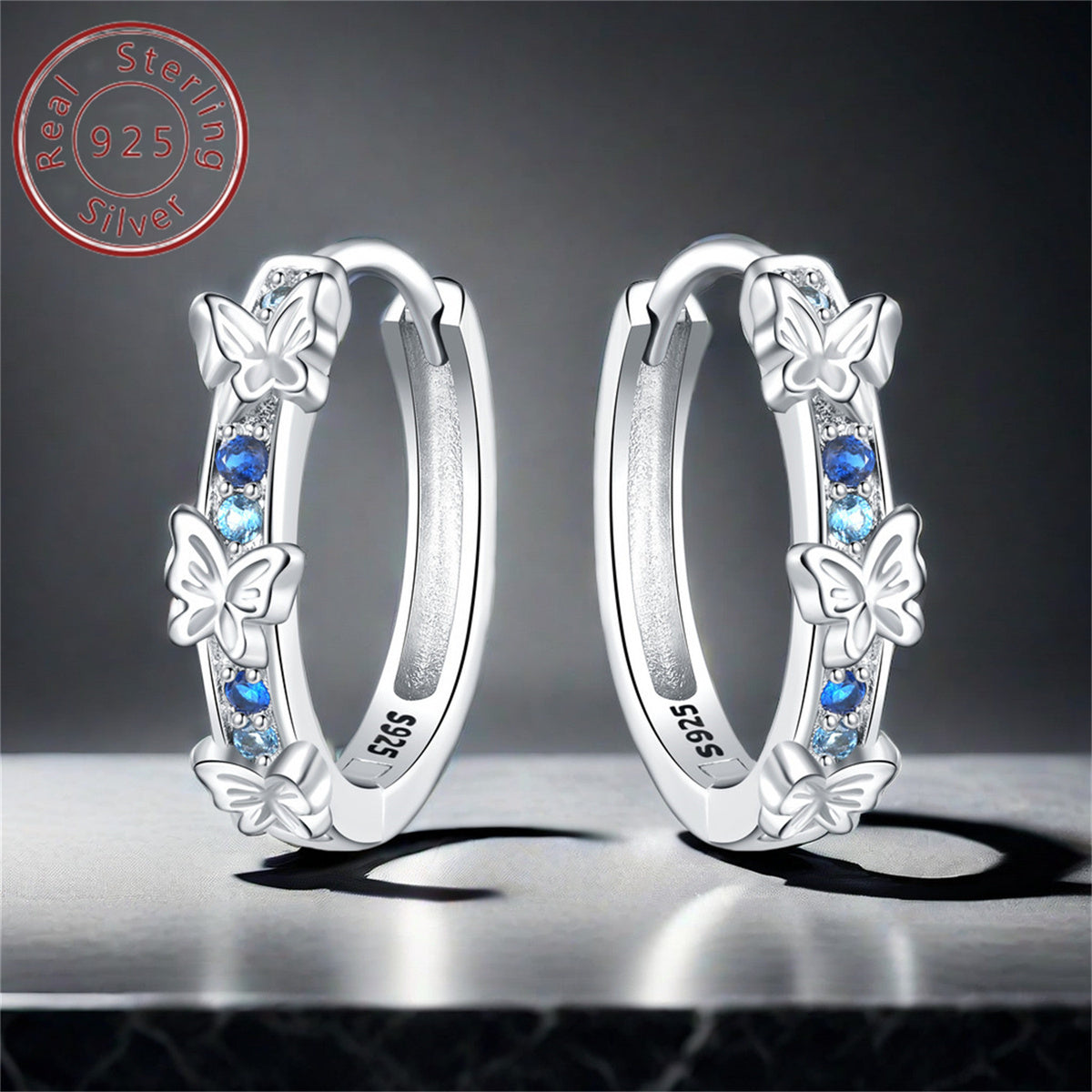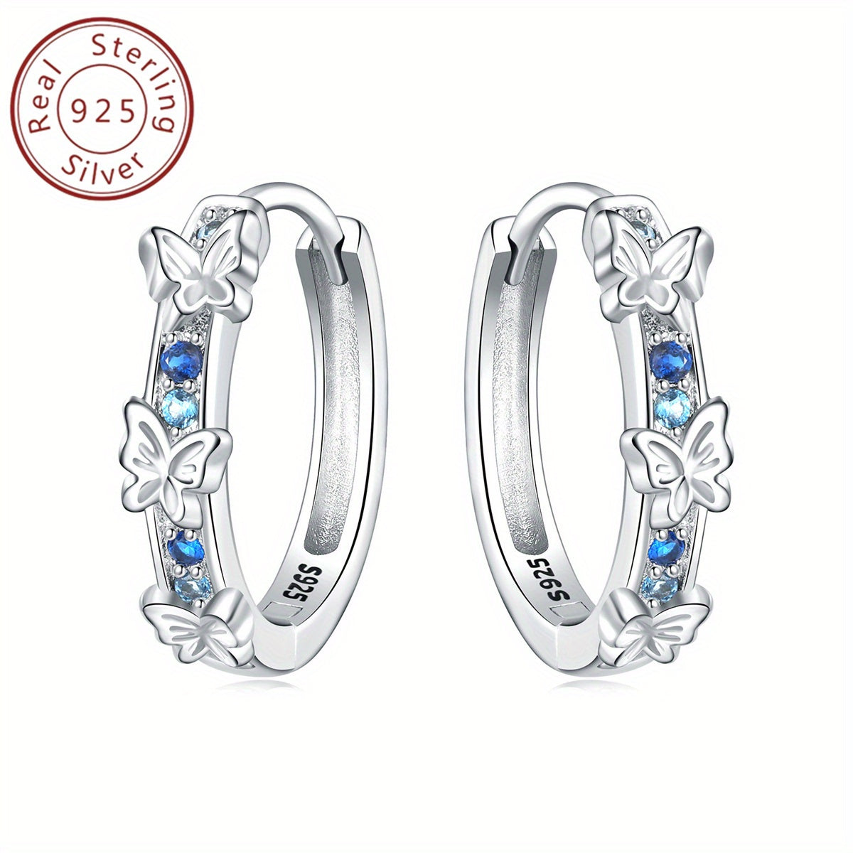 925 Pure Silvery Butterfly Earrings for Women&