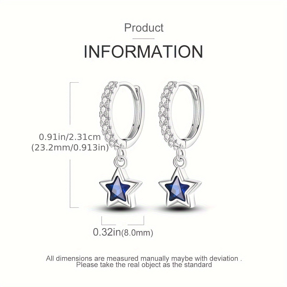 Get these sparkling dark star earrings, weighing 3 grams, made of 925 pure silvery metal. Perfect for women to wear for engagement parties, weddings, or as a gift.