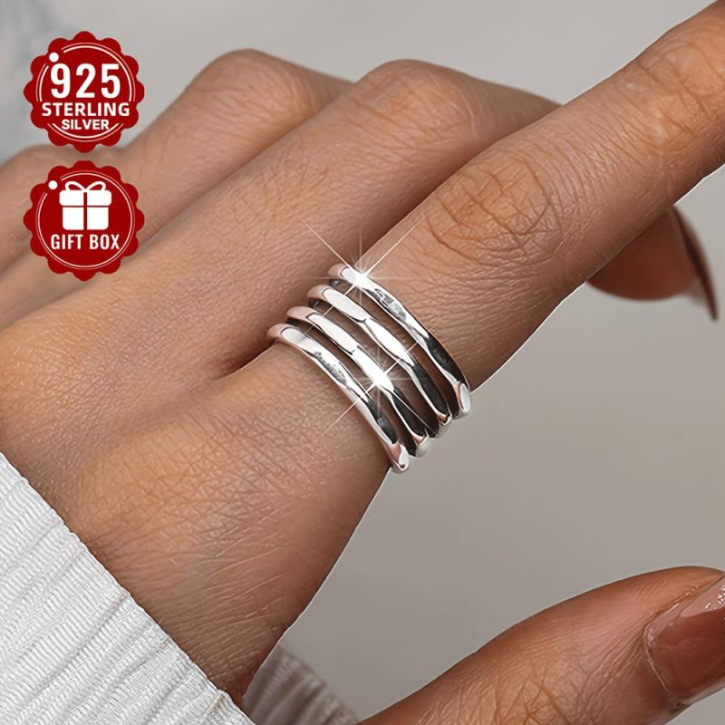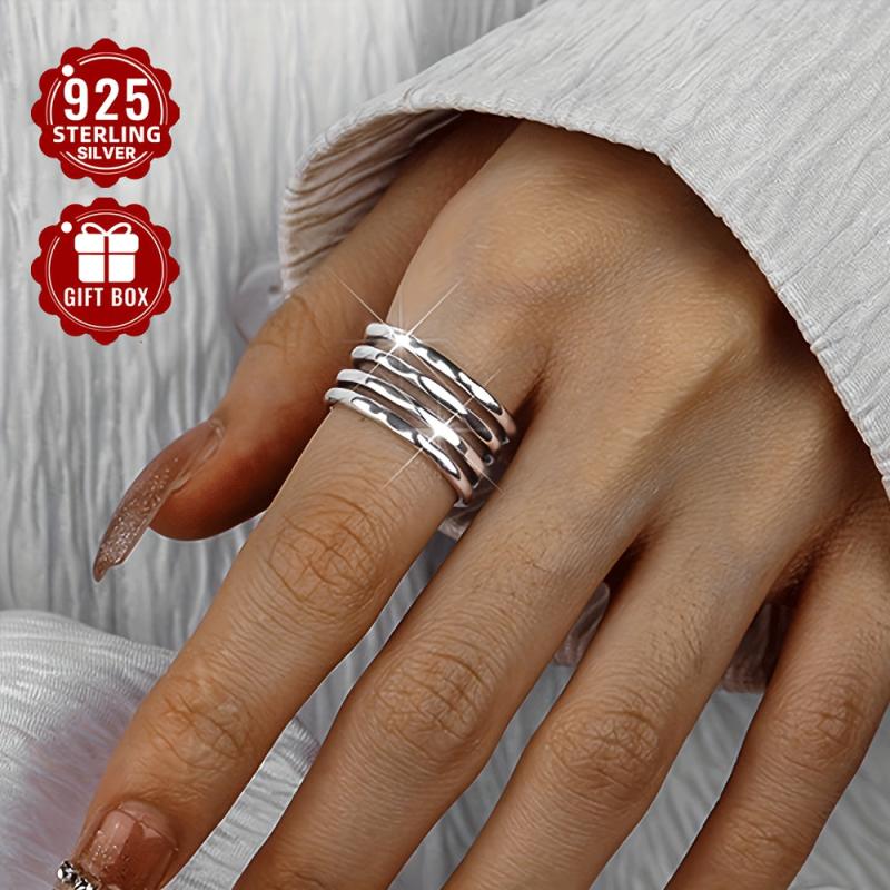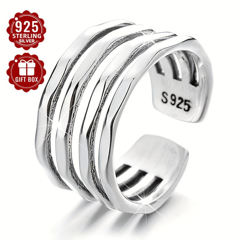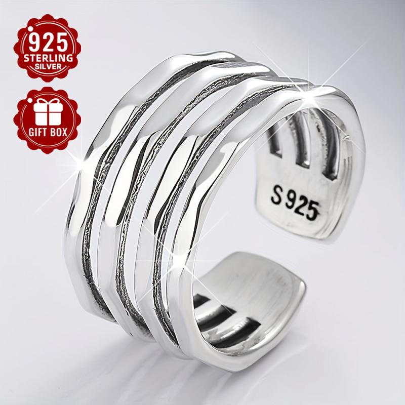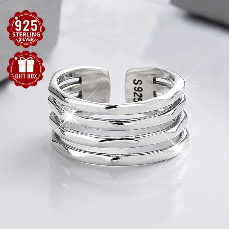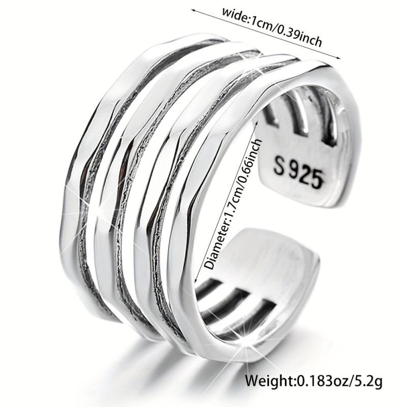 Add a touch of elegance to your daily activities with this wide face ring. Made of 925 pure silver, this retro-style ring features an irregular layer design that is adjustable to fit your finger perfectly.