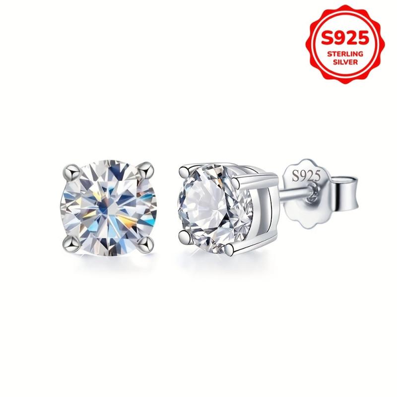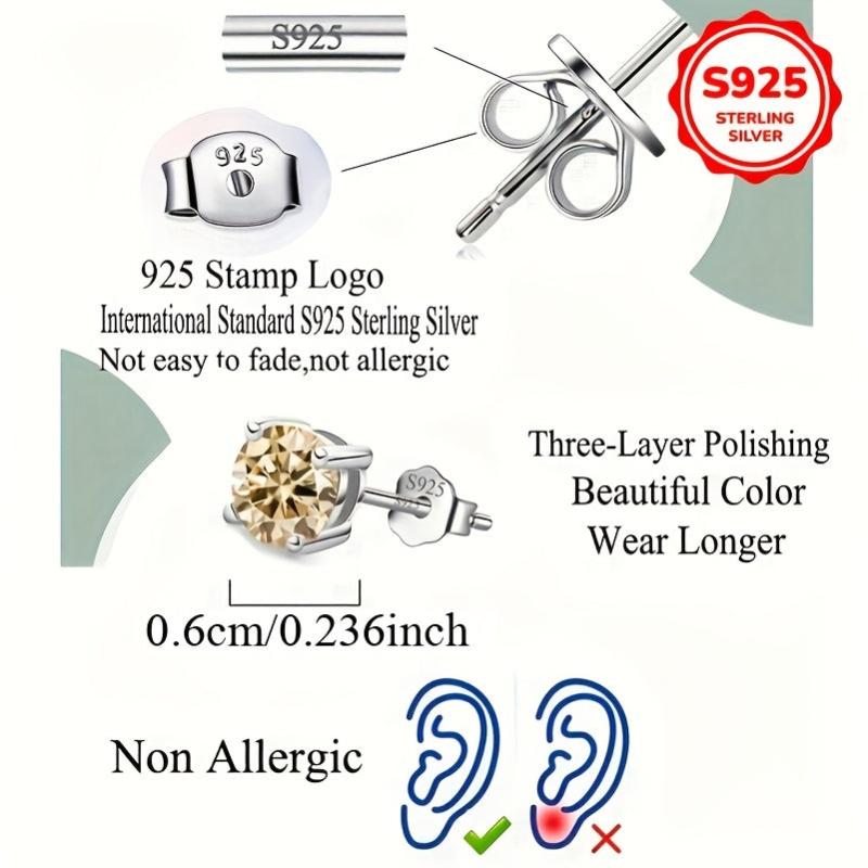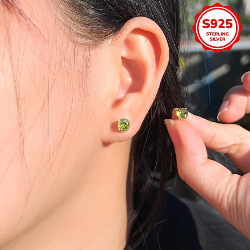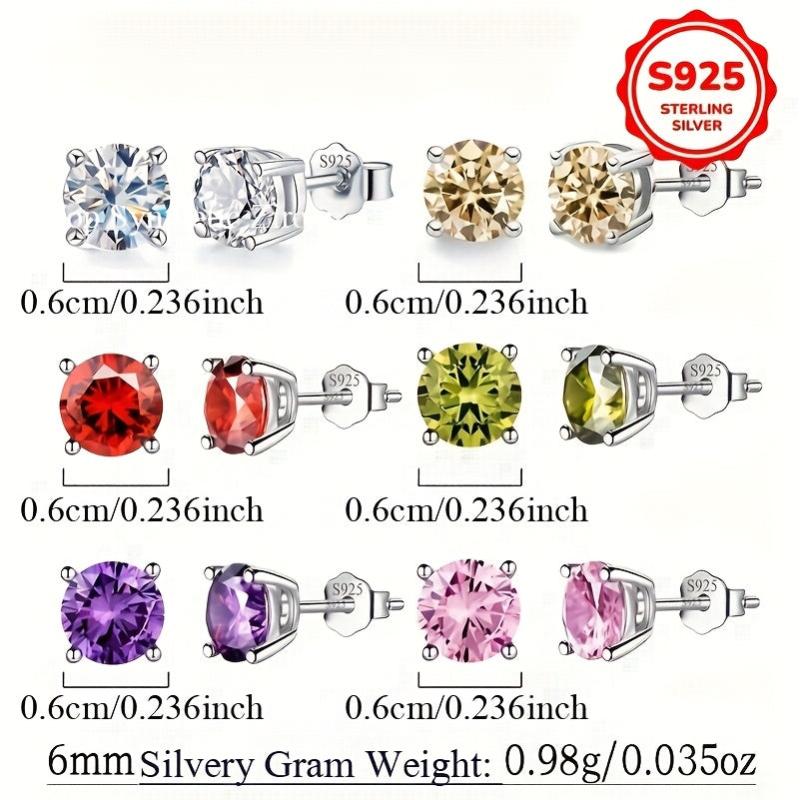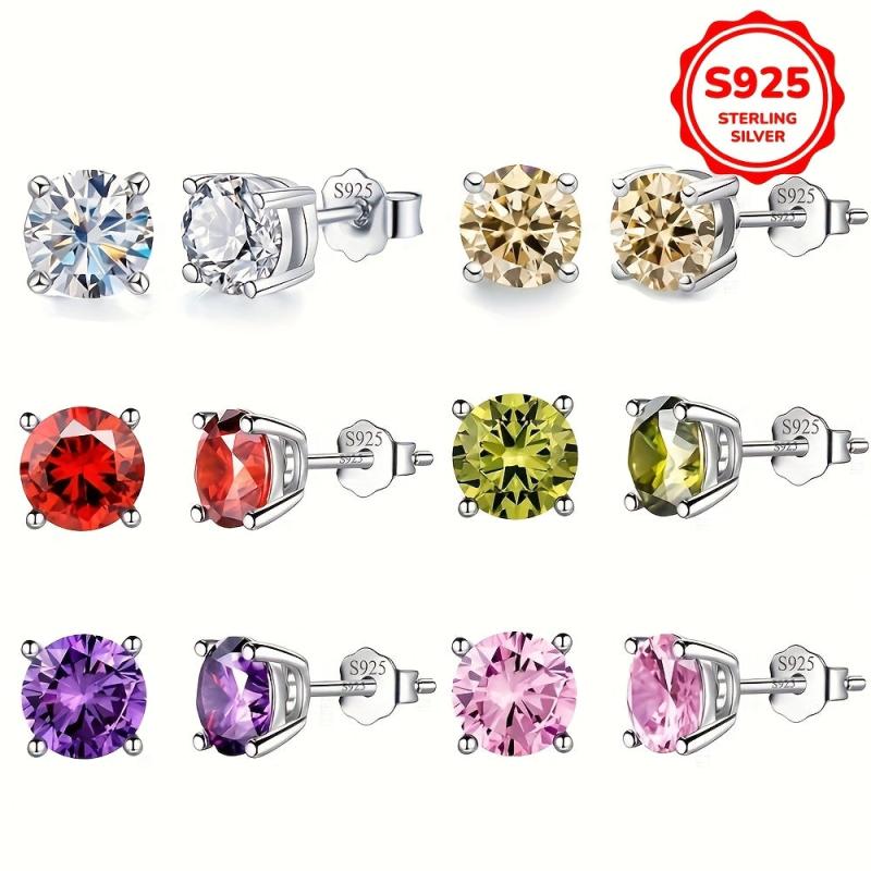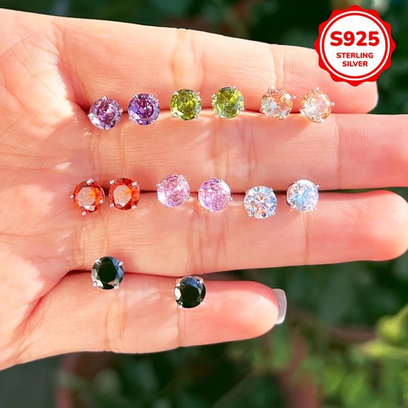 925 Silver 0.98g Classic Multicolor Zirconia Inlaid Stud Earrings