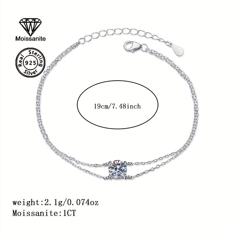 925 Silver 1 Carat Moissanite Bracelet for Women