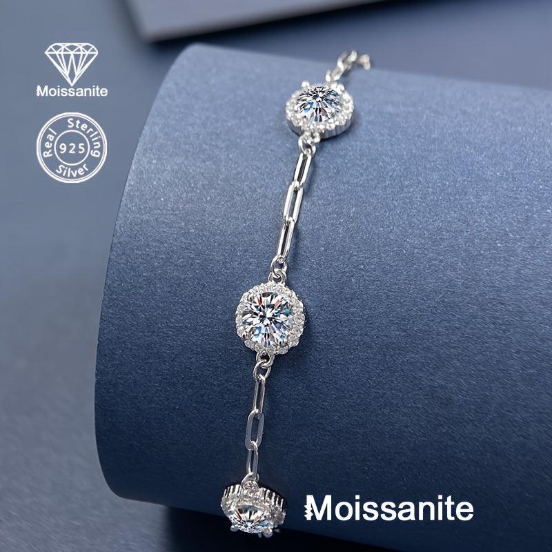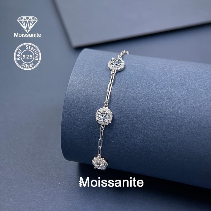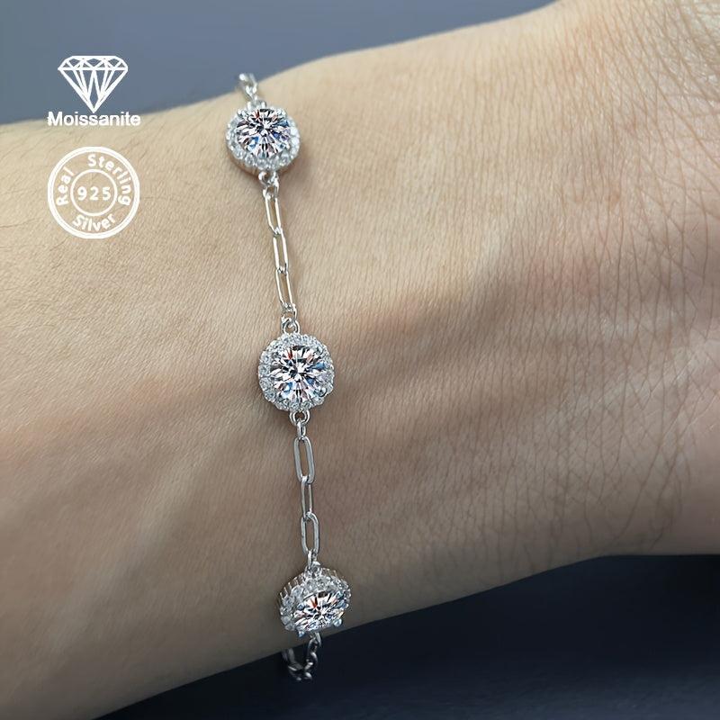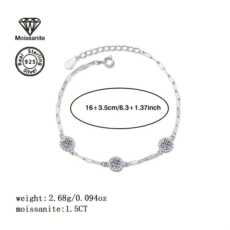 This stunning 925 silver bracelet features a 1.5 carat Moissanite round stone, perfect for daily wear or as a gift for birthdays, Halloween, Christmas, Thanksgiving, Mother's Day, or casual vacation attire.