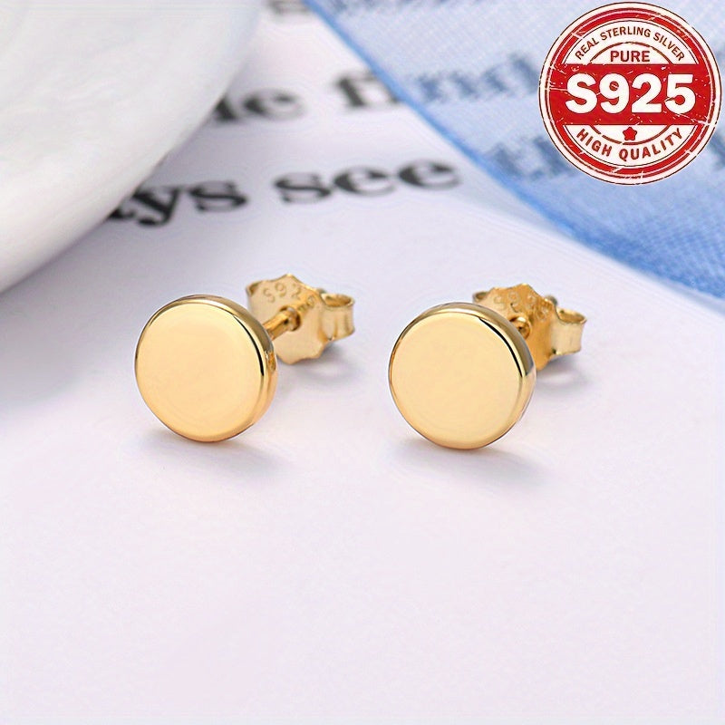 These minimalist stud earrings are crafted from 925 sterling silver with a 18K gold plating. Perfect for daily wear, this unisex accessory is suitable for all seasons and makes a great gift.