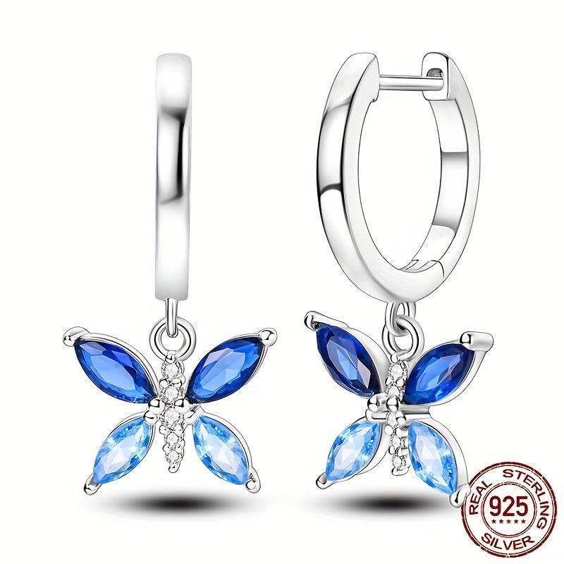 These butterfly earrings are crafted from 925 sterling silver, featuring sparkling synthetic zirconia stones. Perfect for daily wear or special occasions, these earrings are a great gift idea.