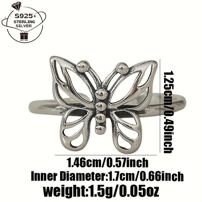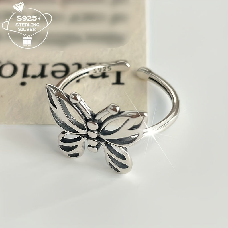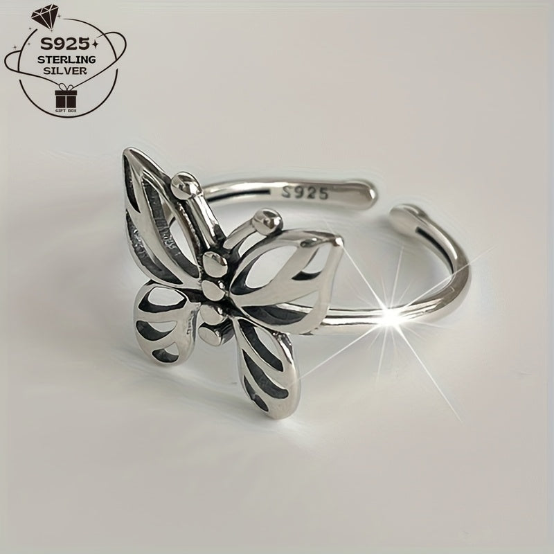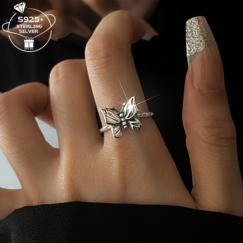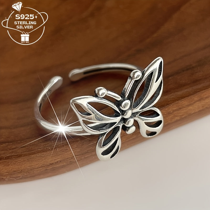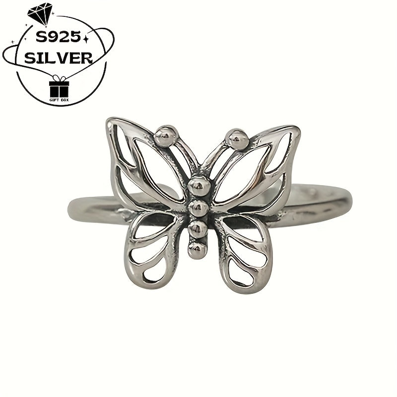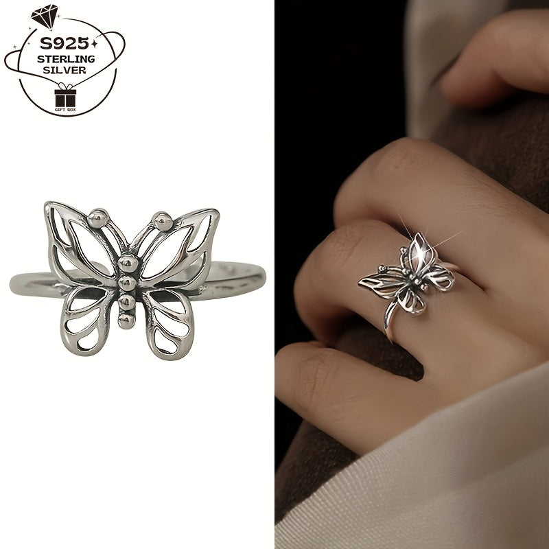 925 Silver Butterfly Ring, Fashionable Hollow Adjustable for Women