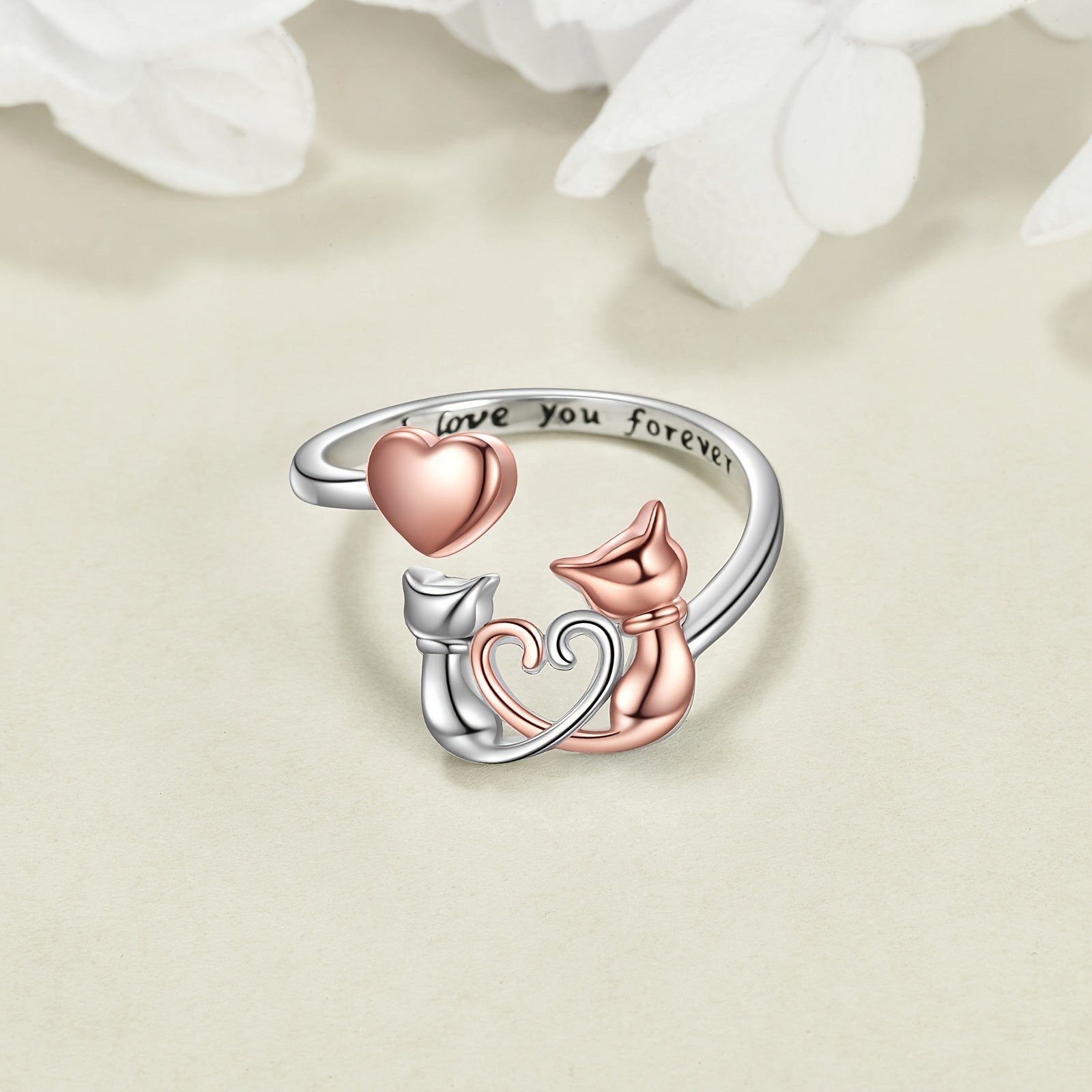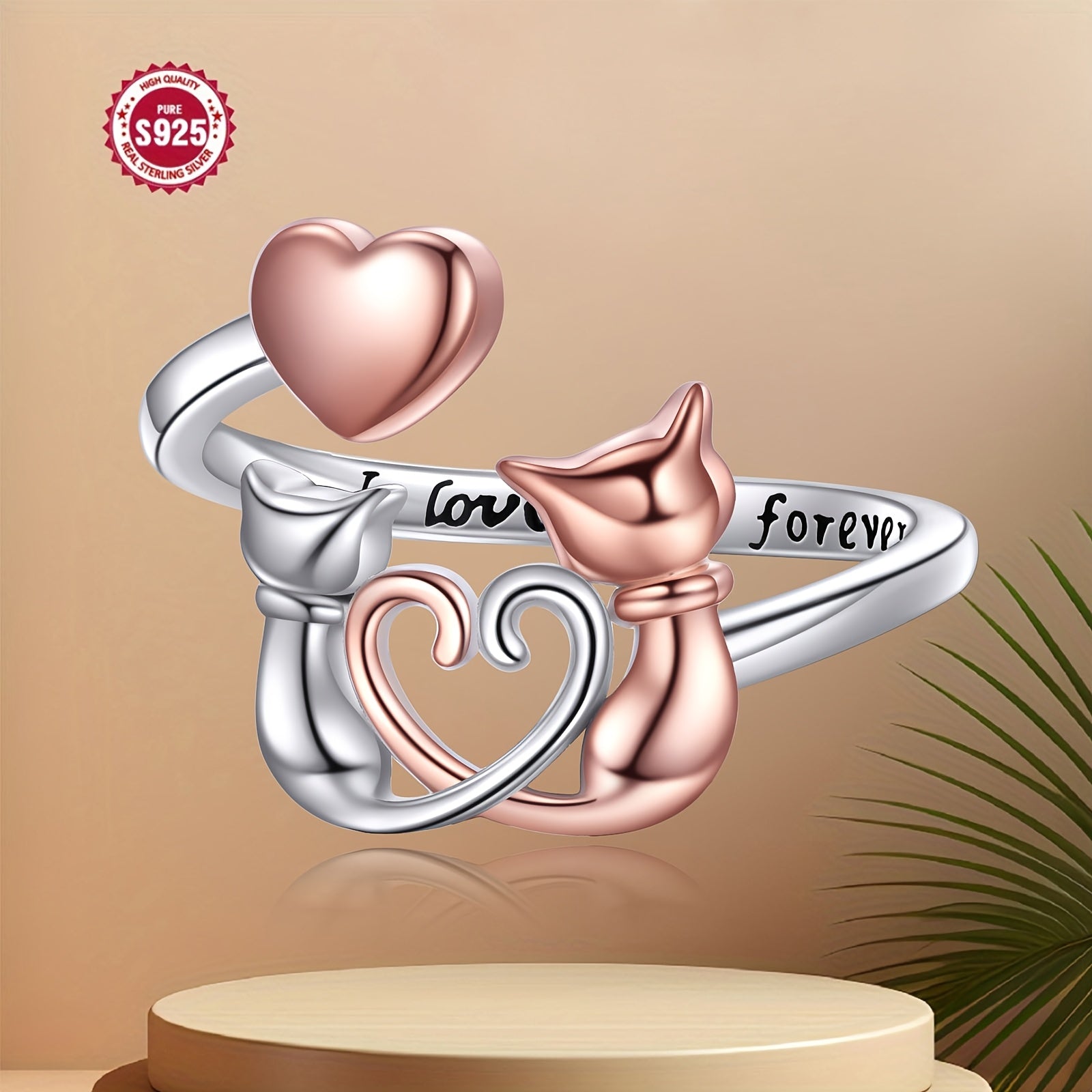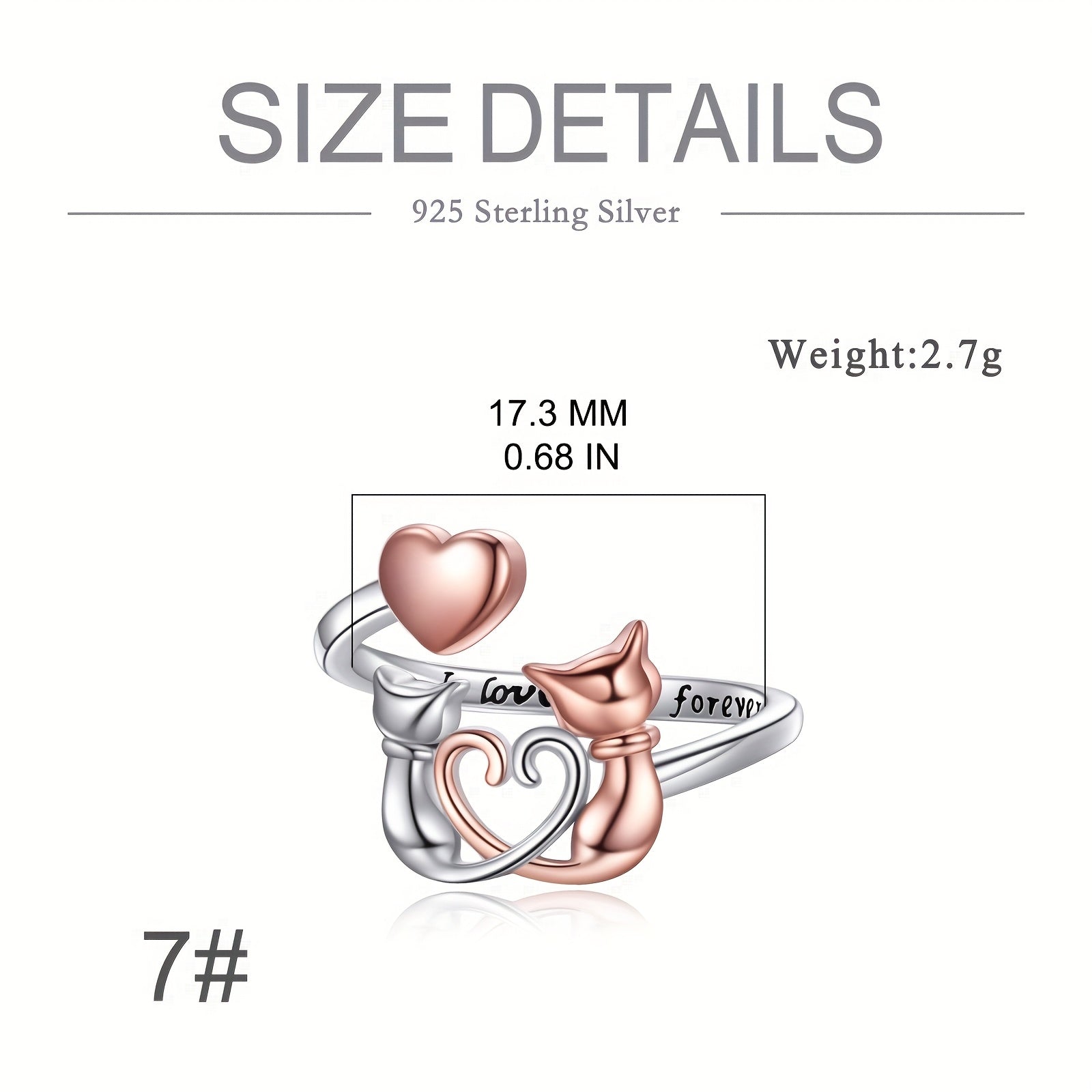 This stunning 925 sterling silver cat ring is a perfect gift for cat lovers. The open adjustable design makes it easy to fit any finger size. Show your love with this adorable cat ring that symbolizes forever.