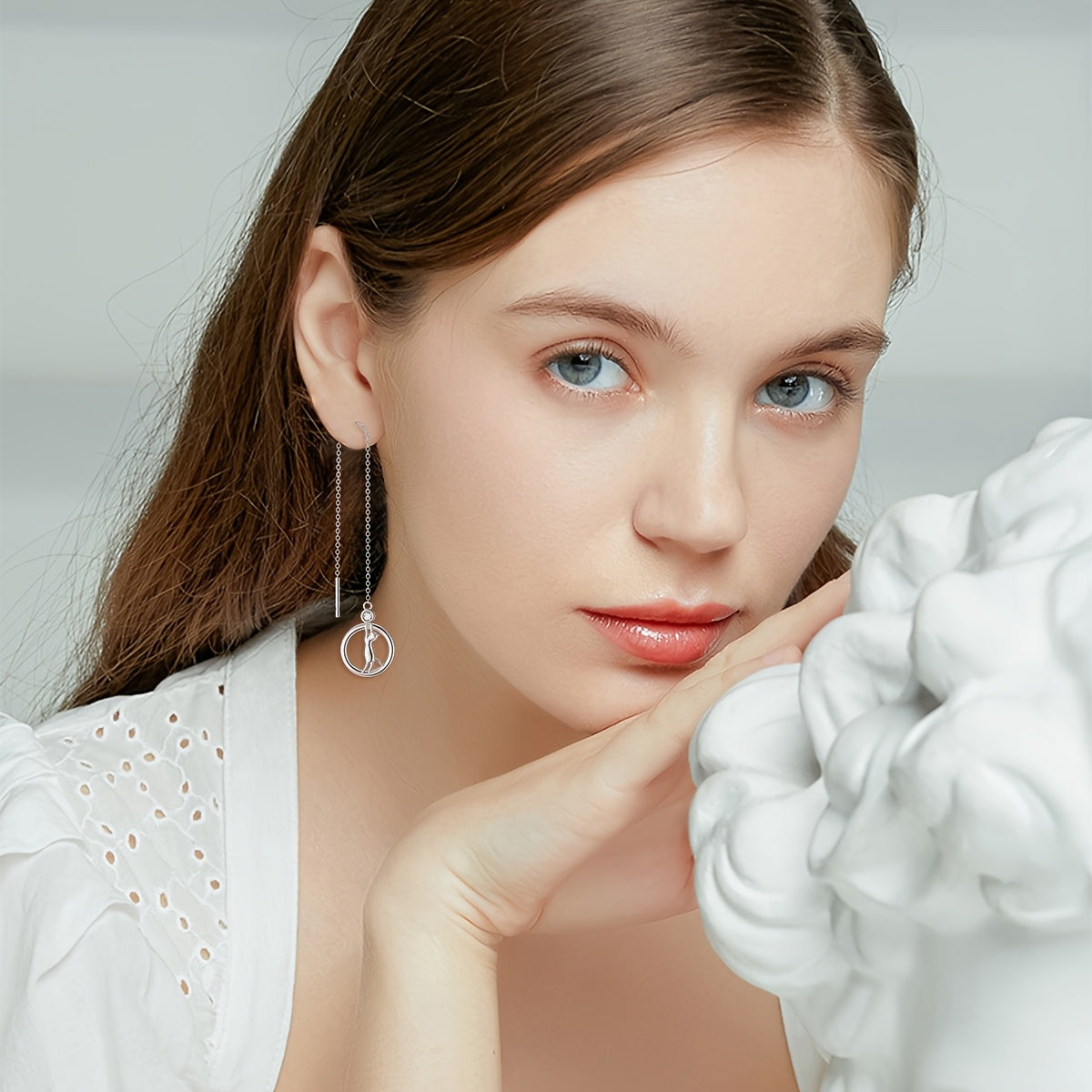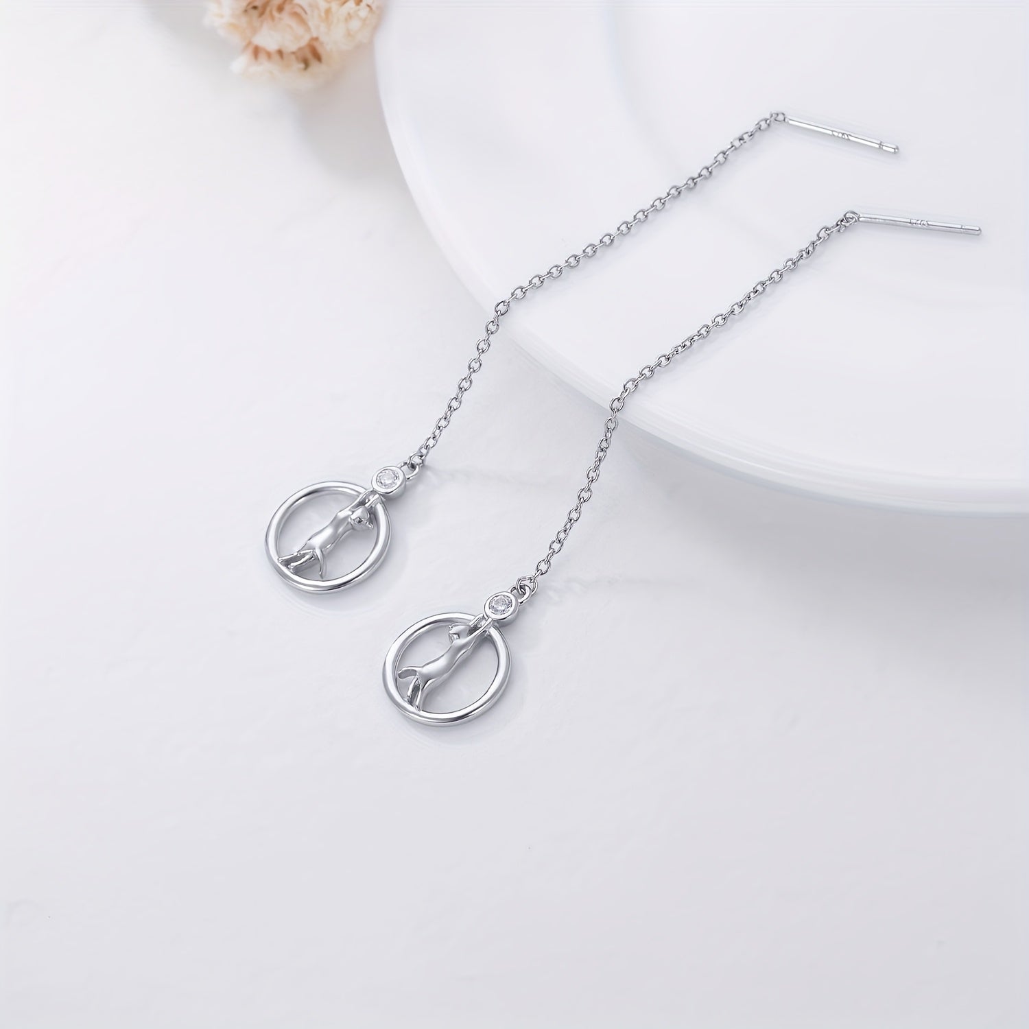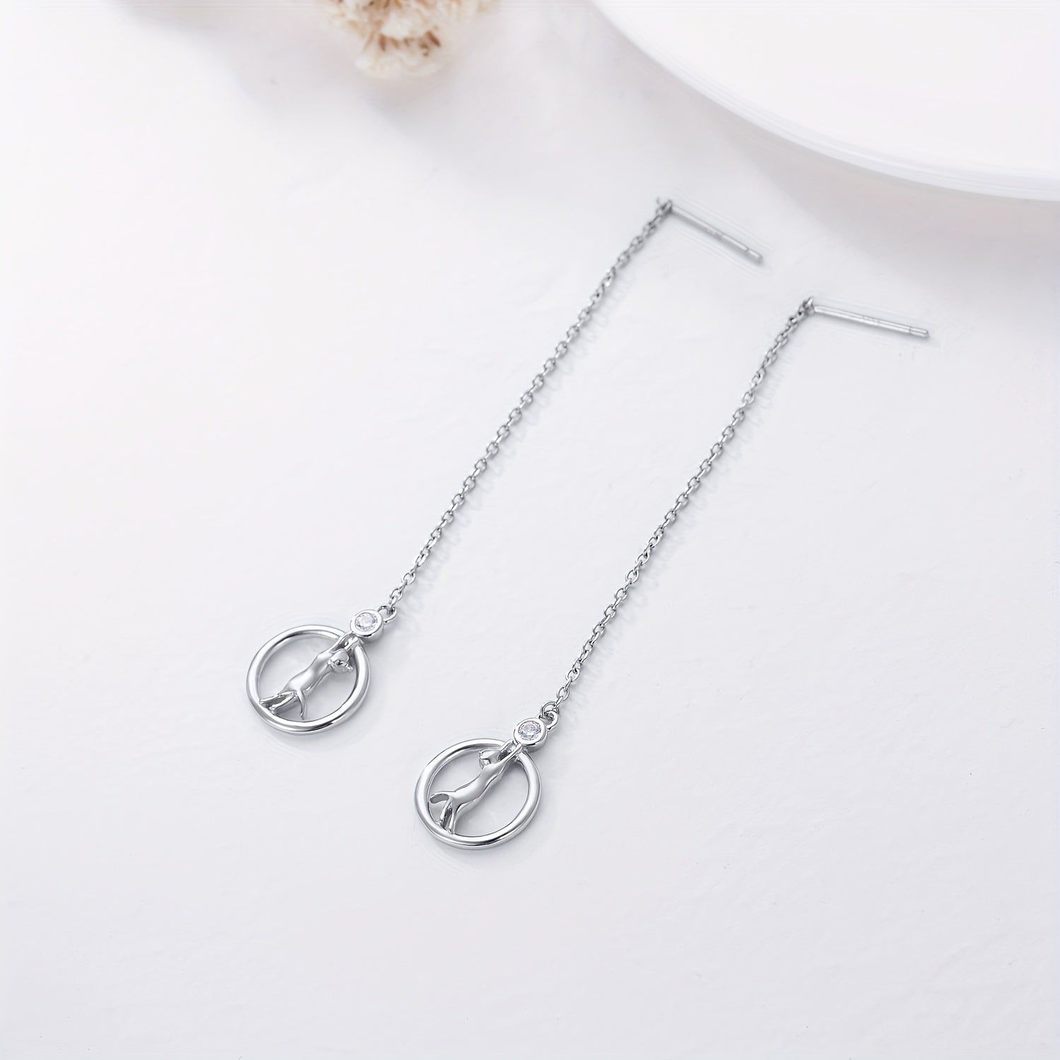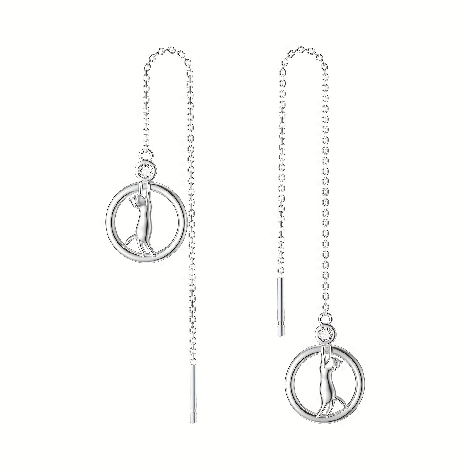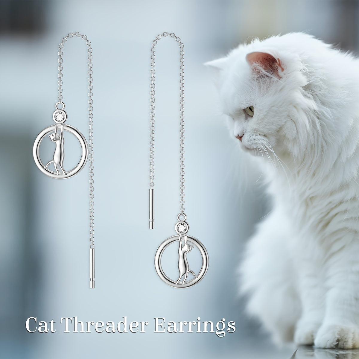 Adorn your ears with these charming 925 sterling silver cat threader earrings, perfect for cat lovers. These cat-themed earrings add a touch of whimsy to any outfit.