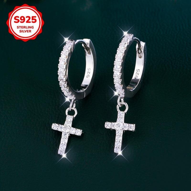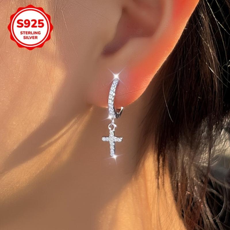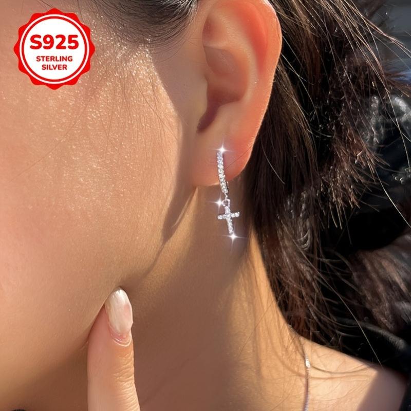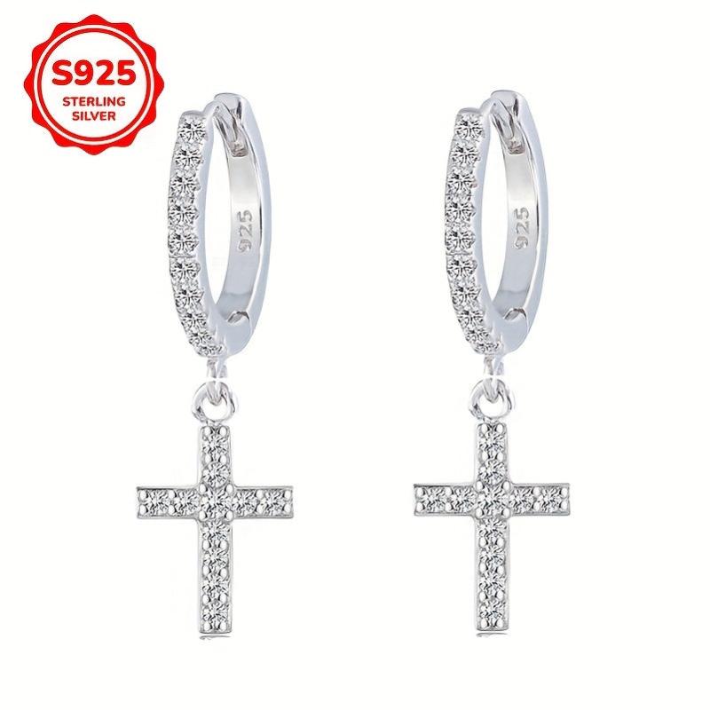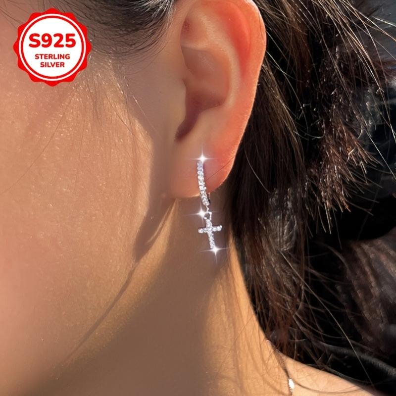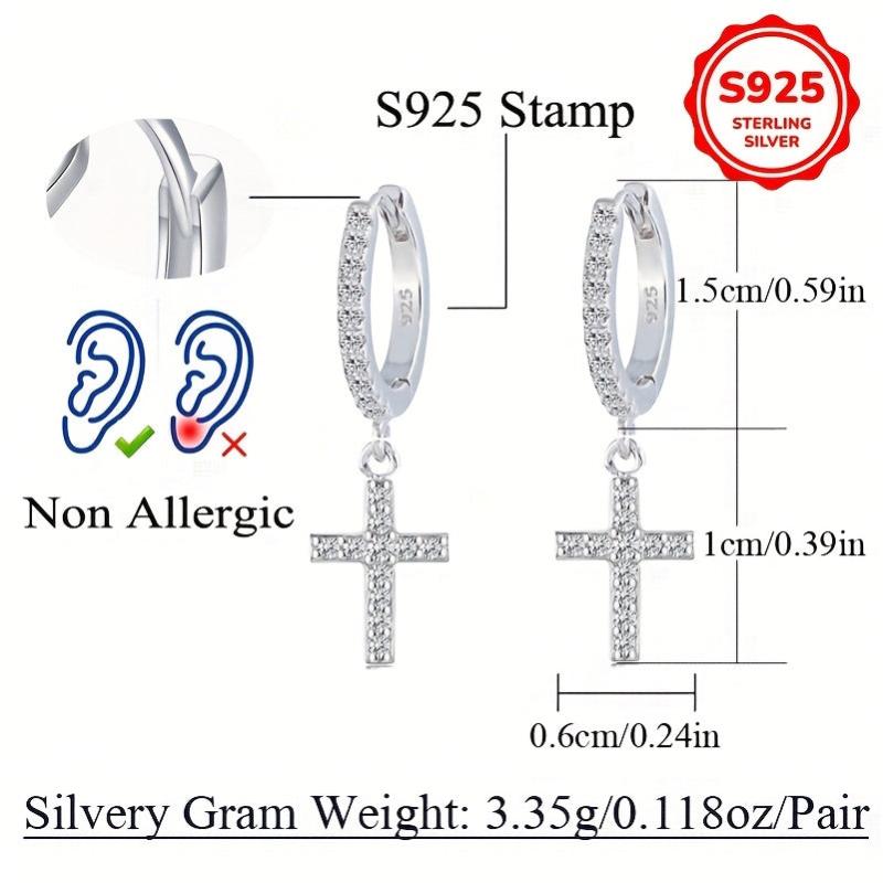 These elegant hoop earrings are made of 925 pure silver with low allergy synthetic zirconia inlay. Perfect for daily wear or special occasions.