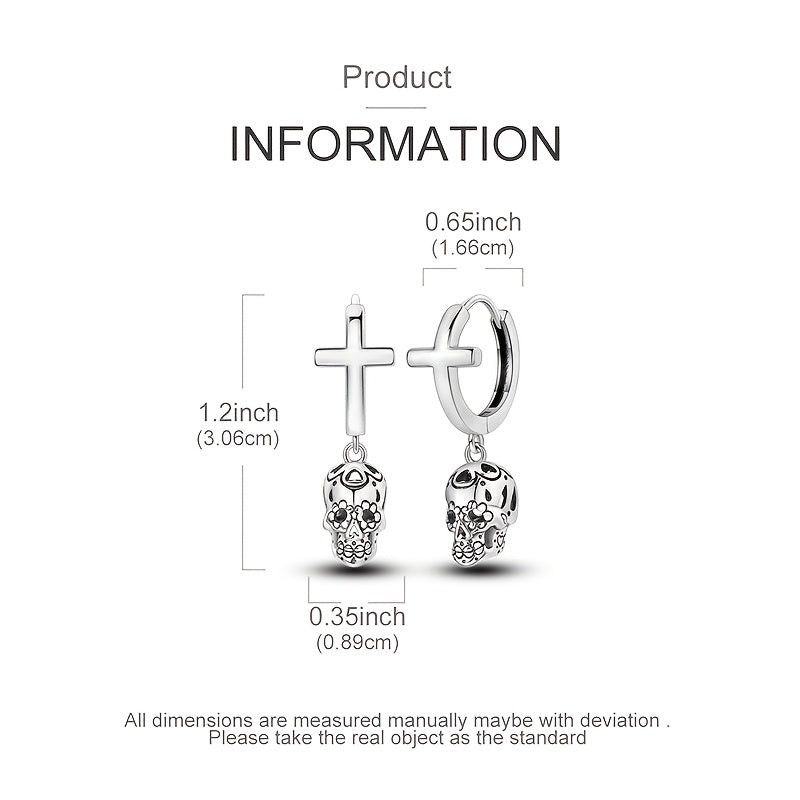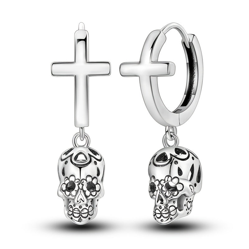 925 Silver Cross Skull Earrings Zirconia Hip Hop Style