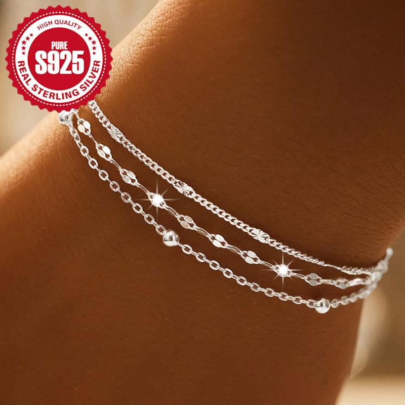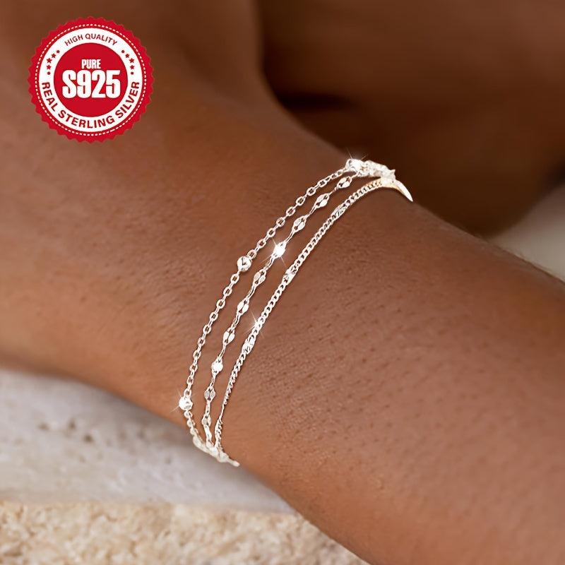 This necklace is perfect for women to wear daily, at parties, and during holidays. Made of 925 silver, it features a cross spacer pendant and three-layer chain design, making it a stylish accessory that is also low-allergy.