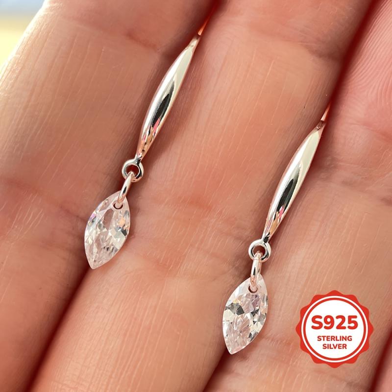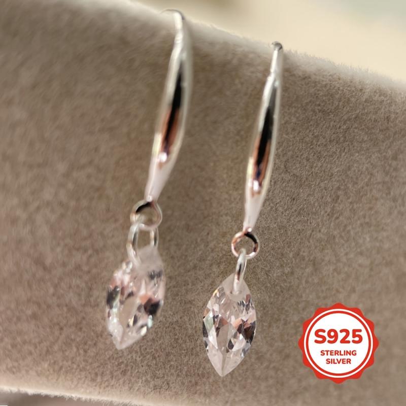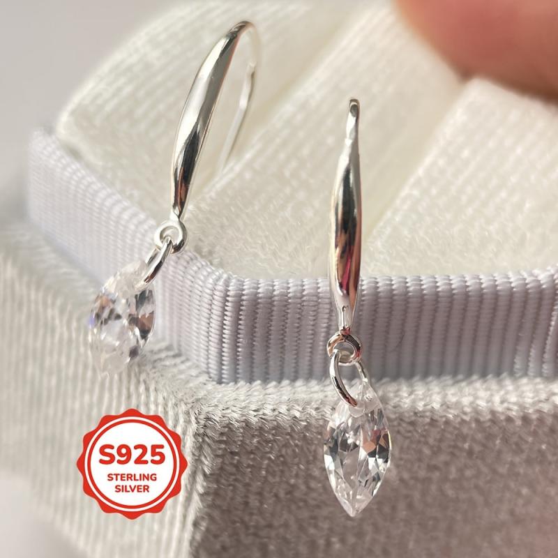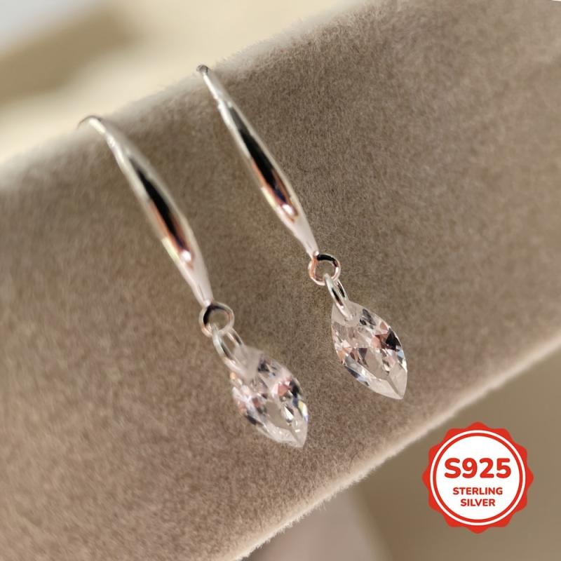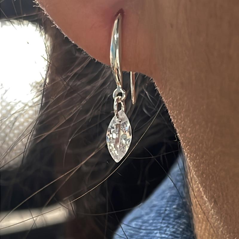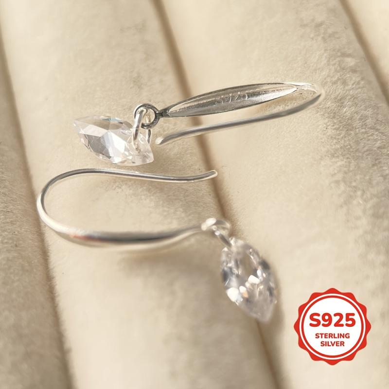 These elegant 925 sterling silver ear hooks are adorned with small marquise cubic zirconia stones, making them perfect for gifting on occasions like birthdays and Valentine's day.