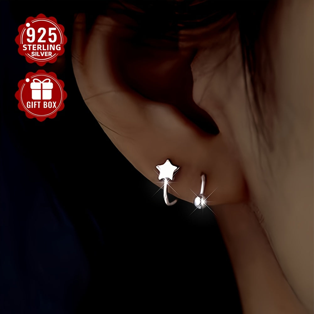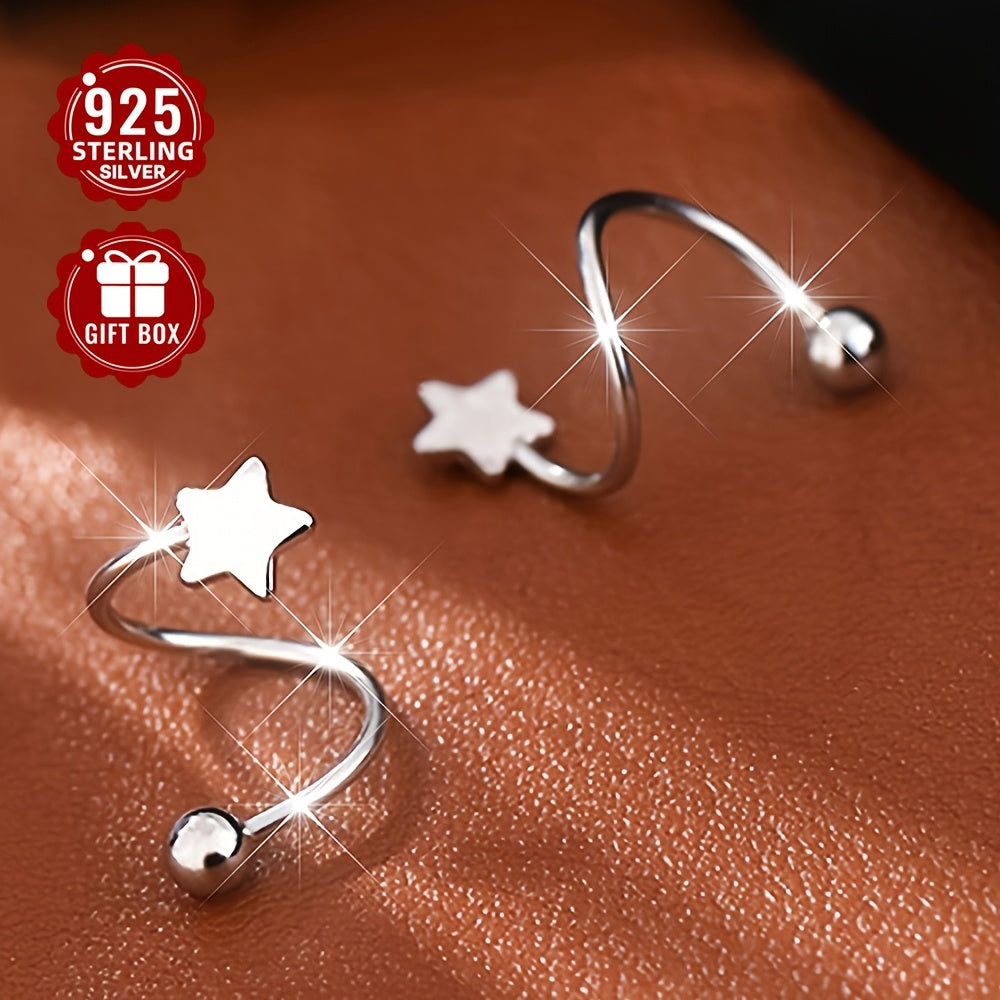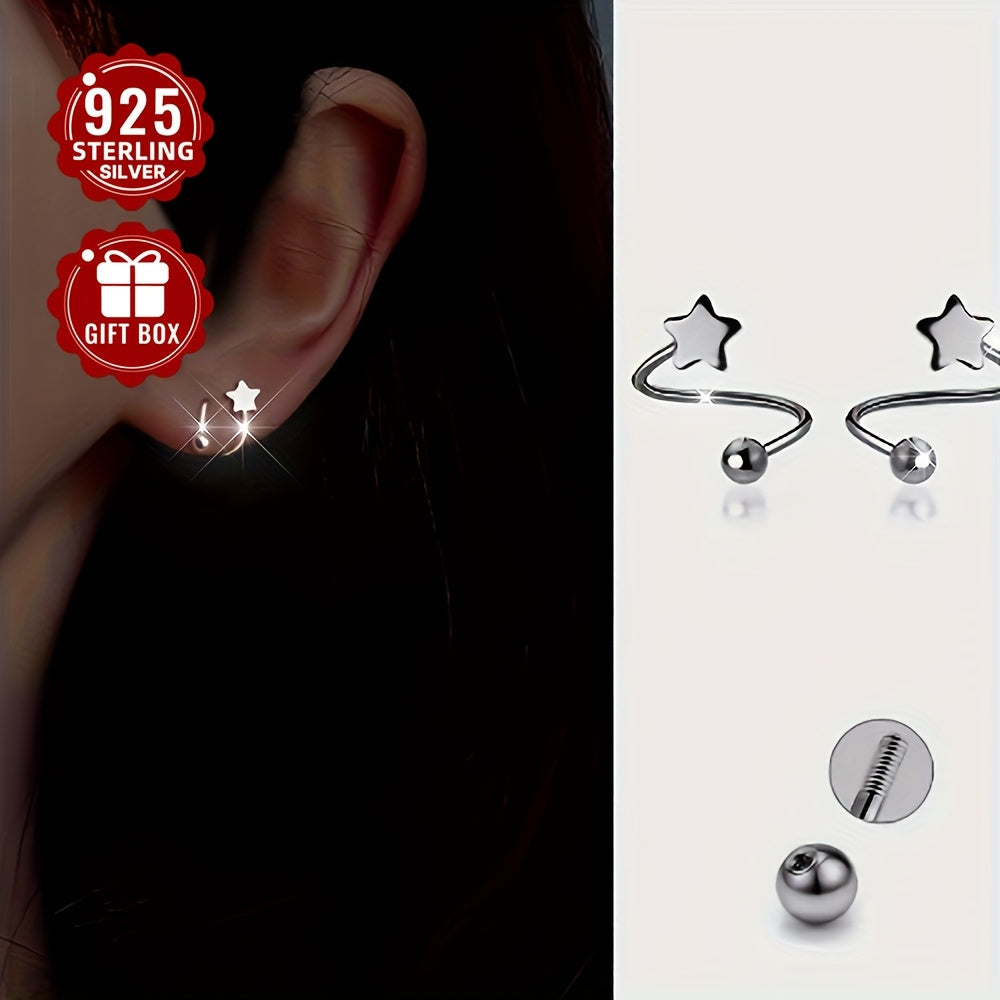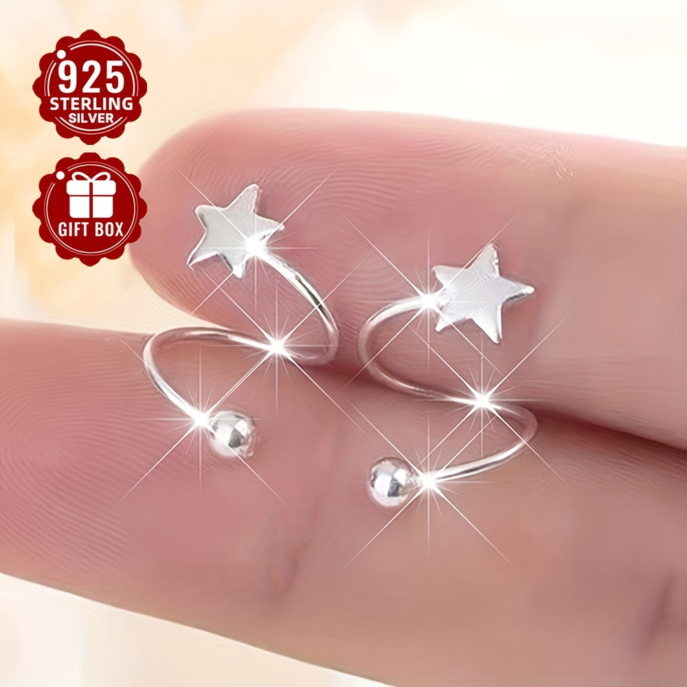 These stylish earrings for women are made of 925 sterling silver. They feature round beads and star-shaped screw backs that allow for comfortable wearing even while sleeping.