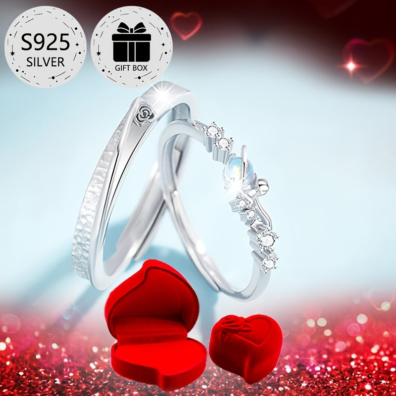This adjustable 925 sterling silver ring is perfect for proposals, weddings, parties, and daily wear. Featuring a romantic rose design with a heart accent, this ring is a beautiful symbol of love.