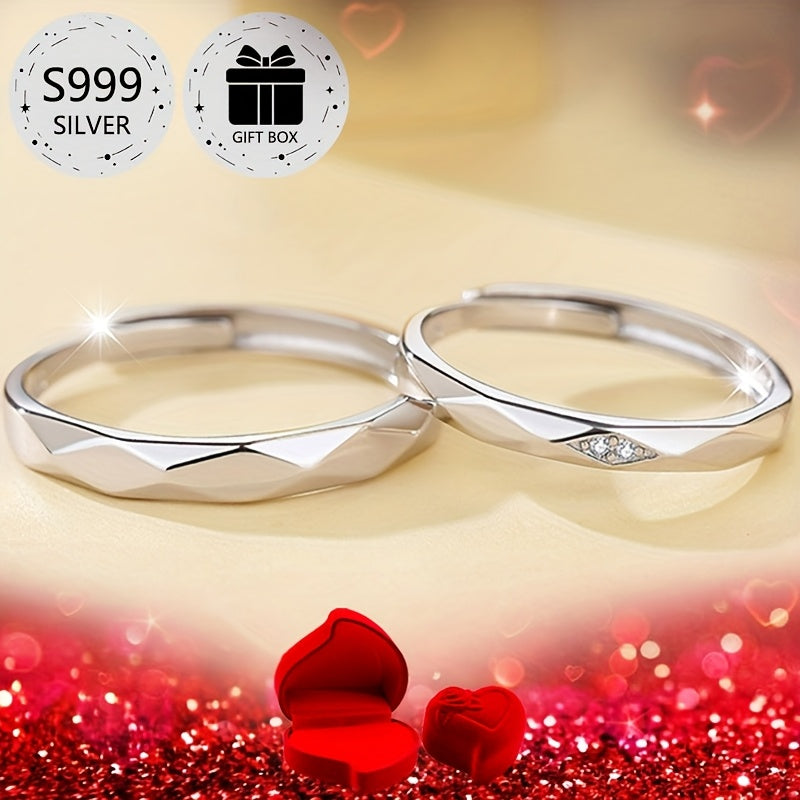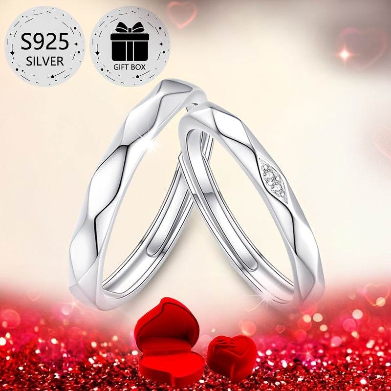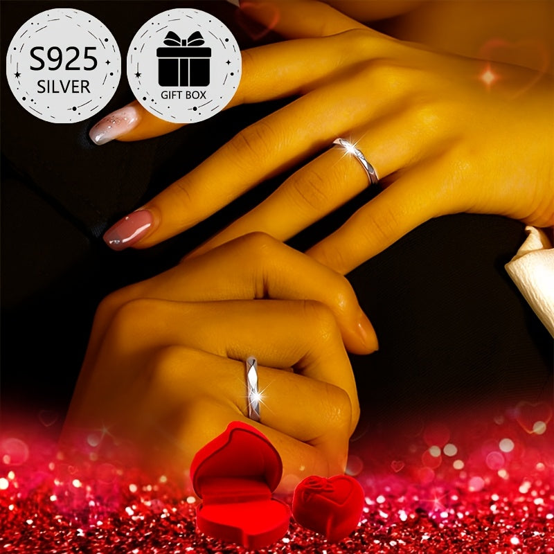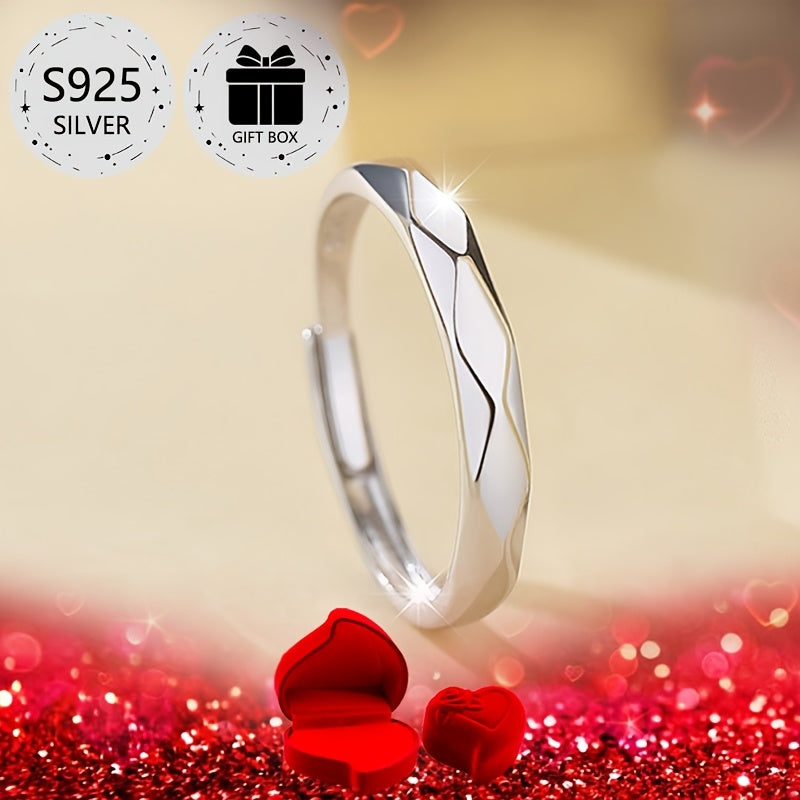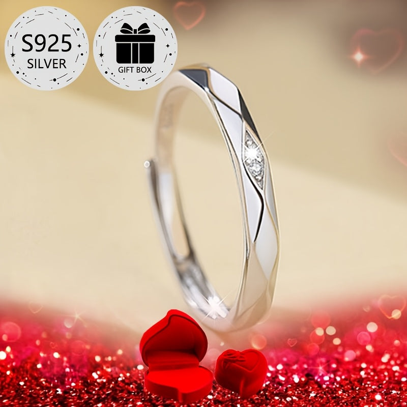 This stunning 925 sterling silver engagement ring is the perfect gift for any woman. The ring is adjustable and features a beautiful geometric design. It comes in a heart-shaped box, making it an ideal present for a loved one.