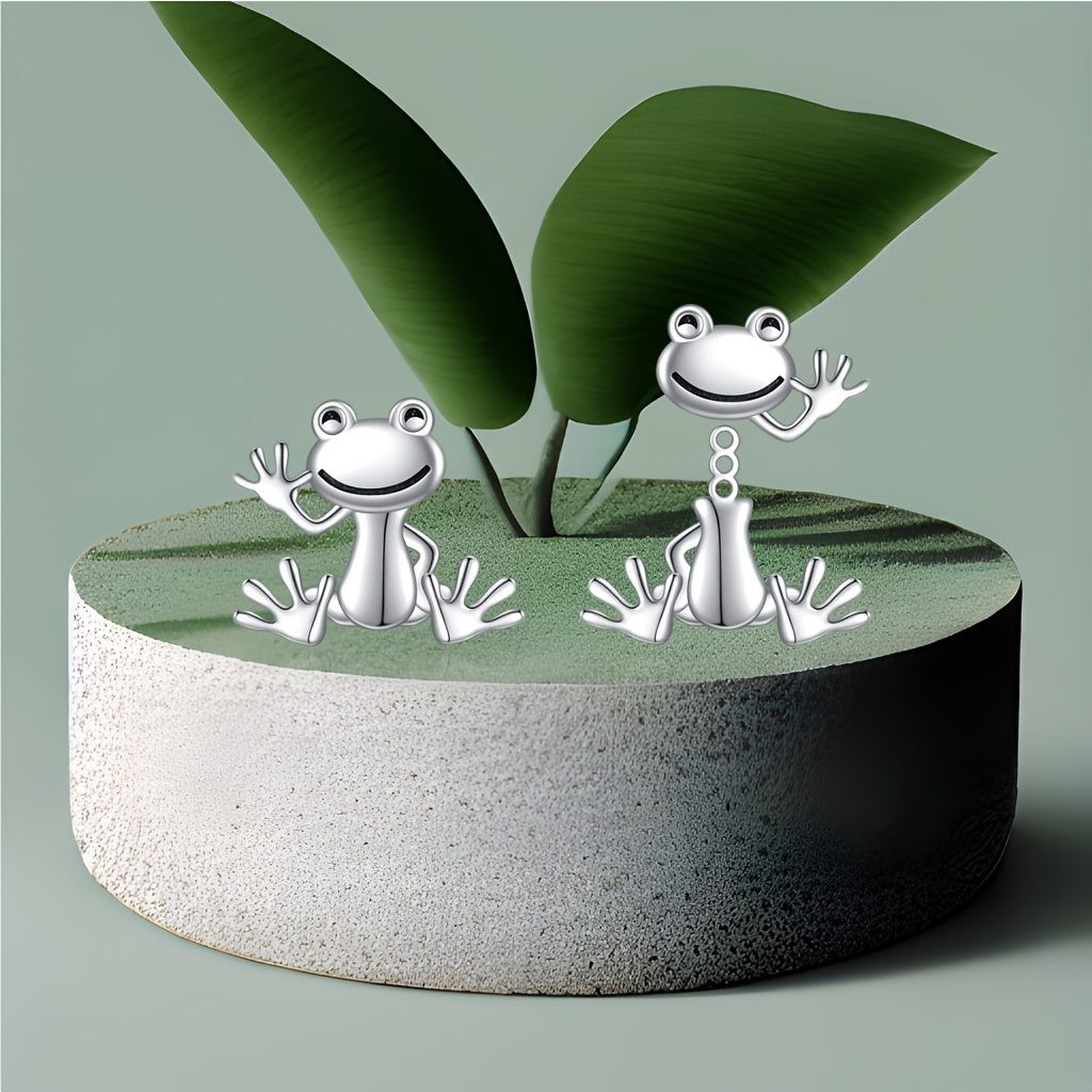 Adorable frog stud earrings made of 925 sterling silver, perfect for frog lovers and nature enthusiasts.