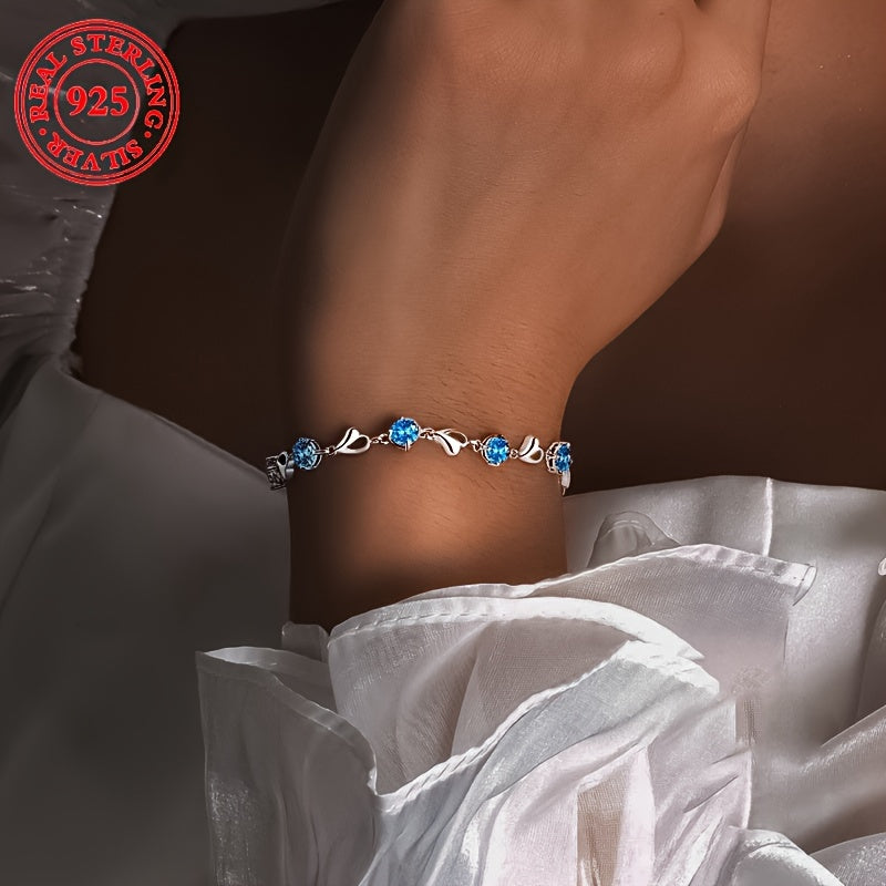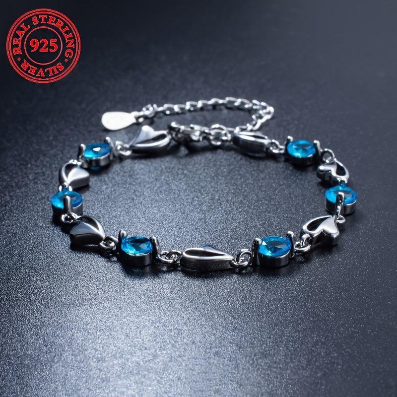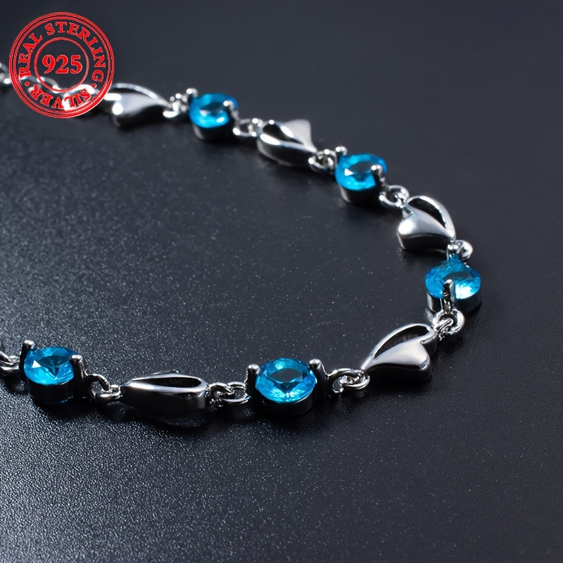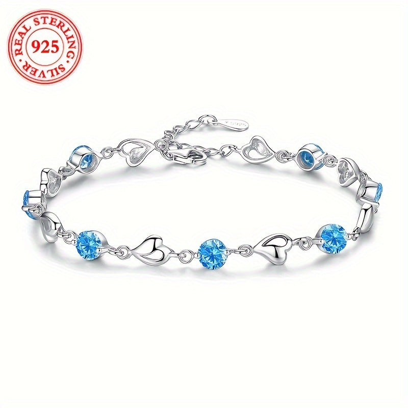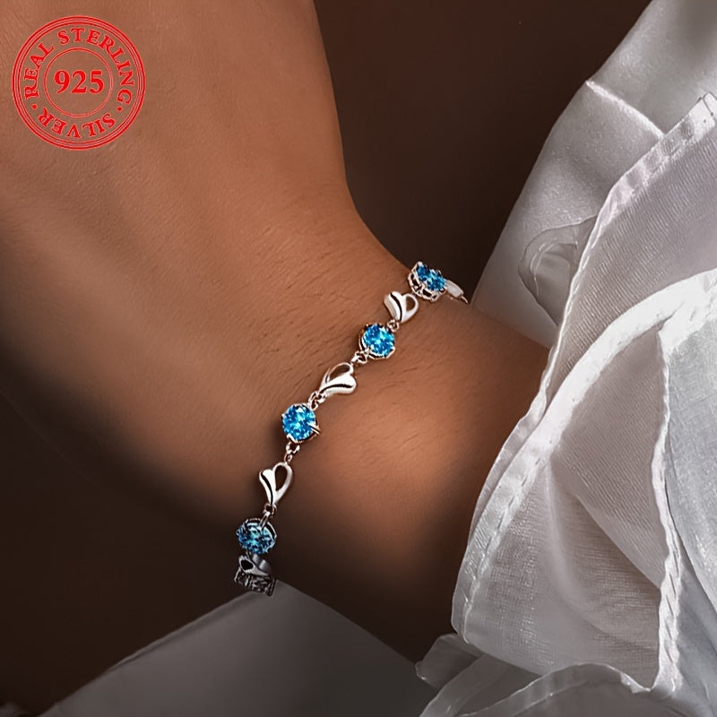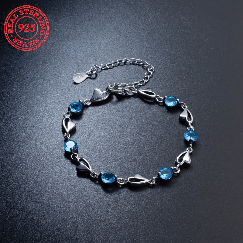 Elegant bracelet for women with a hollow heart design and a light featuring synthetic zirconia. Made of 925 silver, weighing 5.5 grams.
