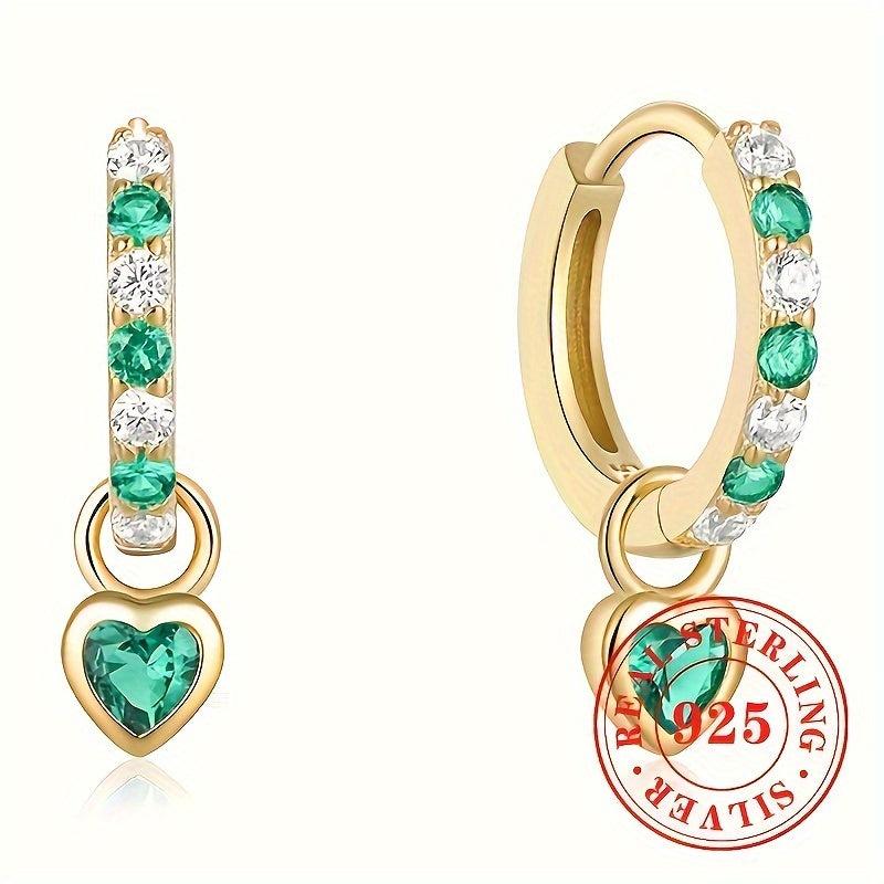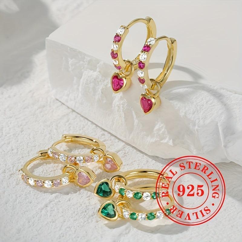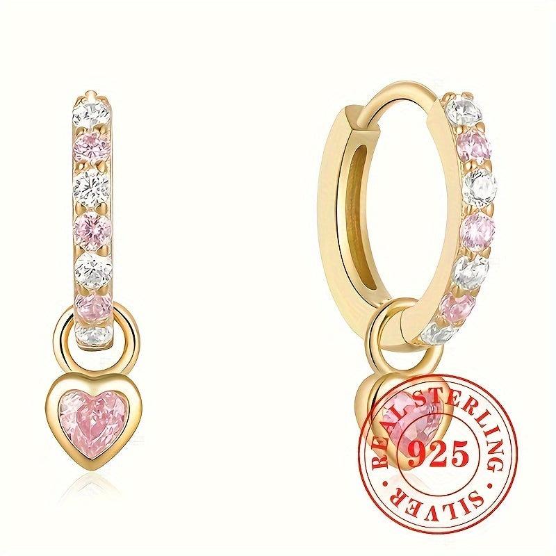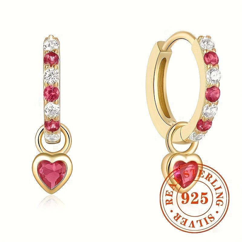 These stunning hoop earrings feature a heart pendant with synthetic gems inlaid, perfect for adding a touch of sexy style to any outfit. Made from hypoallergenic 925 sterling silver, these earrings make a great gift for any occasion.