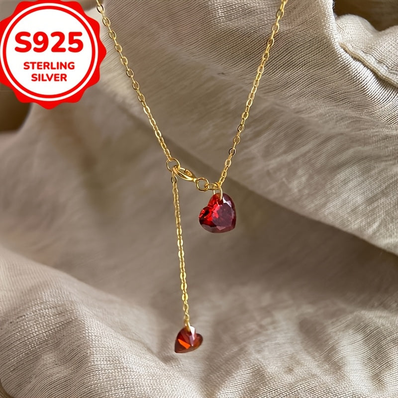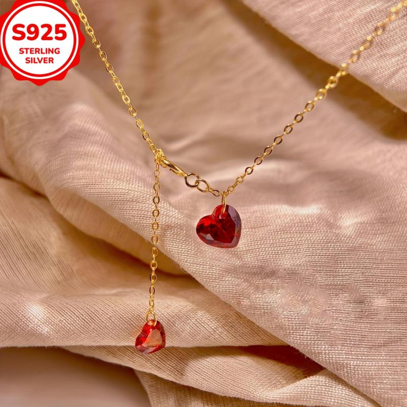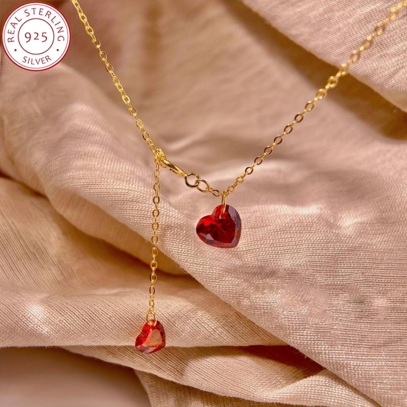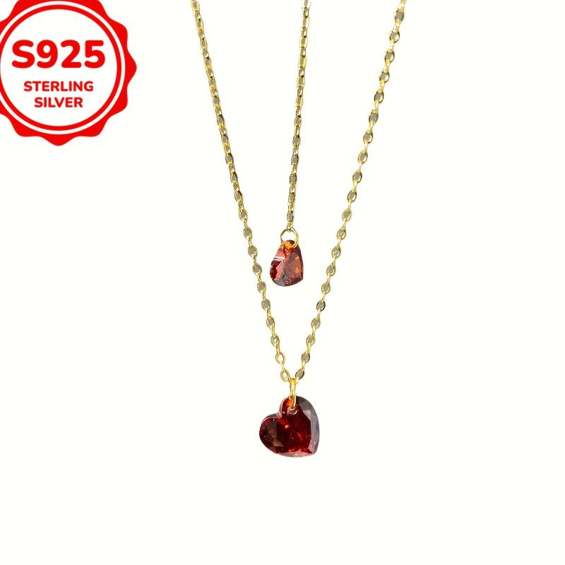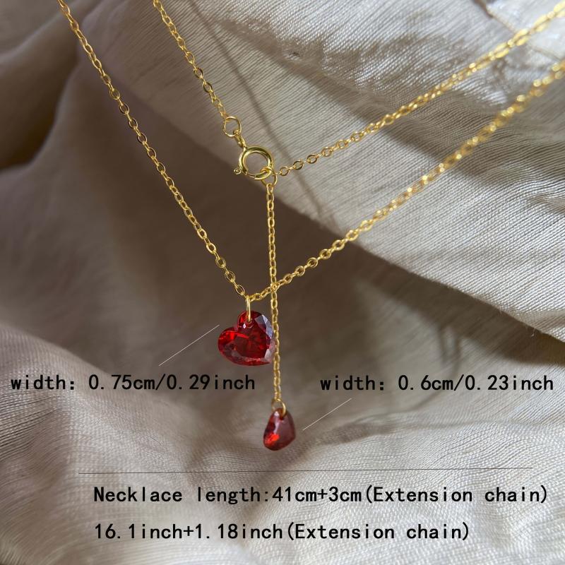 Add a pop of color to your outfit with this stunning heart pendant necklace featuring red zirconia stones. This necklace is made of high-quality 925 sterling silver with a 14K gold plating, adding a touch of luxury to your look.