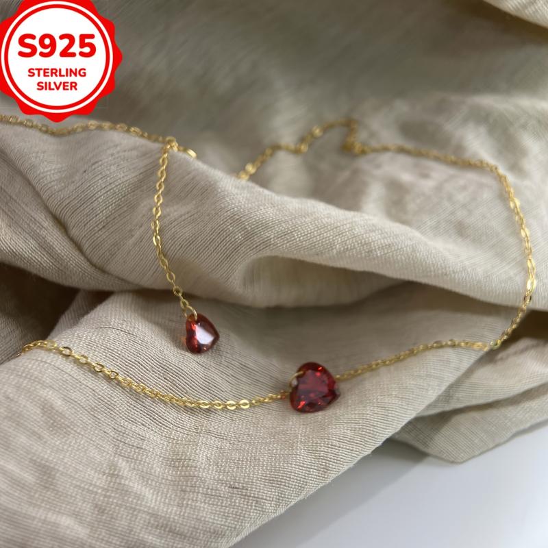 925 Silver Heart Pendant Necklace Gold Plated Red Zirconia Celestia