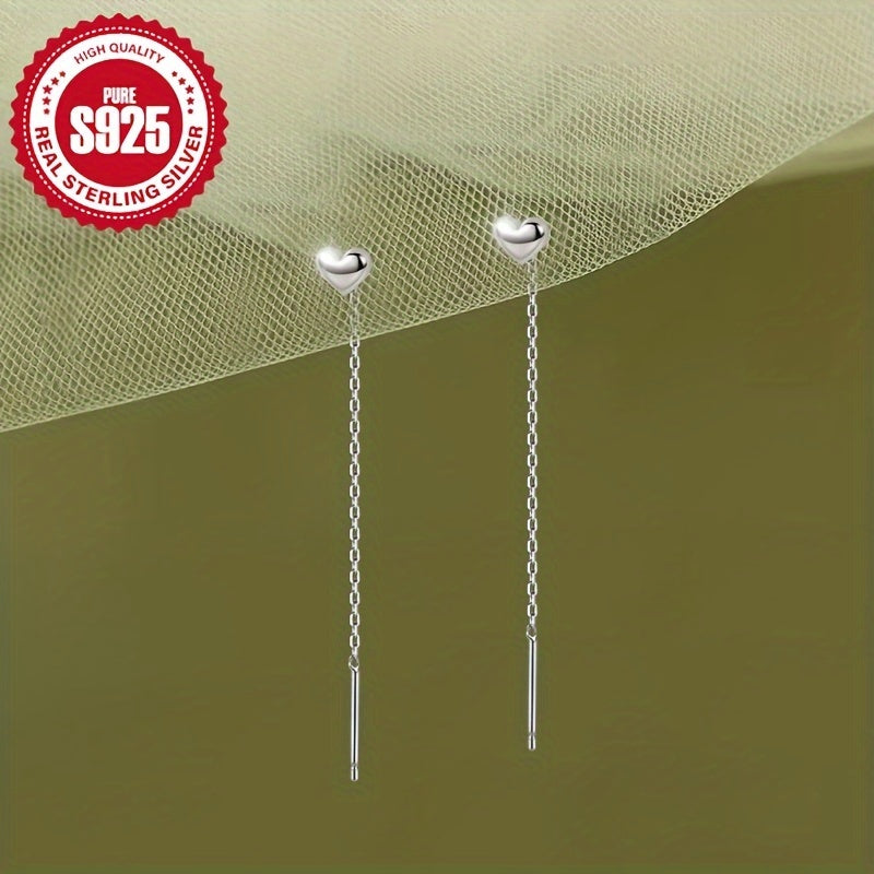 These elegant heart tassel drop earrings are made of 925 silver, weighing only 0.5g. Perfect as a hypoallergenic Thanksgiving gift.